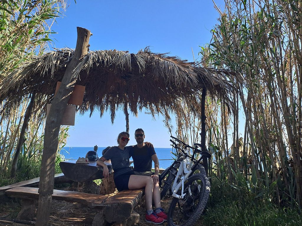Serves meat, vegan options available. Beach bar offering a vegan couscous salad and olives.