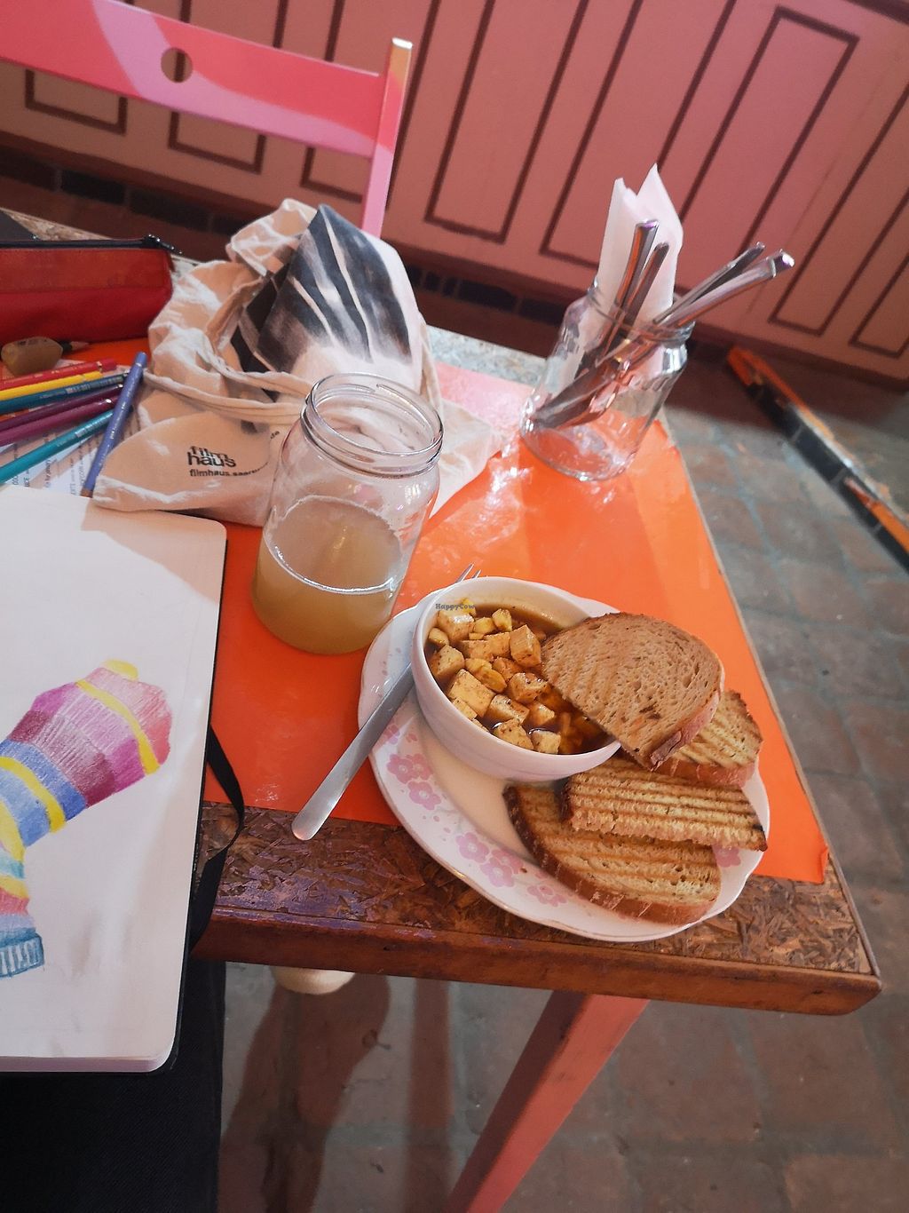 Read moreThe food is quite tasty and filling, and the place itself is very cosy and aesthetically pleasing. It's worth noting that Prague cuisine can be quite heavy: the tofu scramble was about 50% vegan butter, and the bread was served with two huge chunks of butter, which was also the butter used to fry the sausage. This approach to cooking wasn't quite to my taste, but that's okay😄