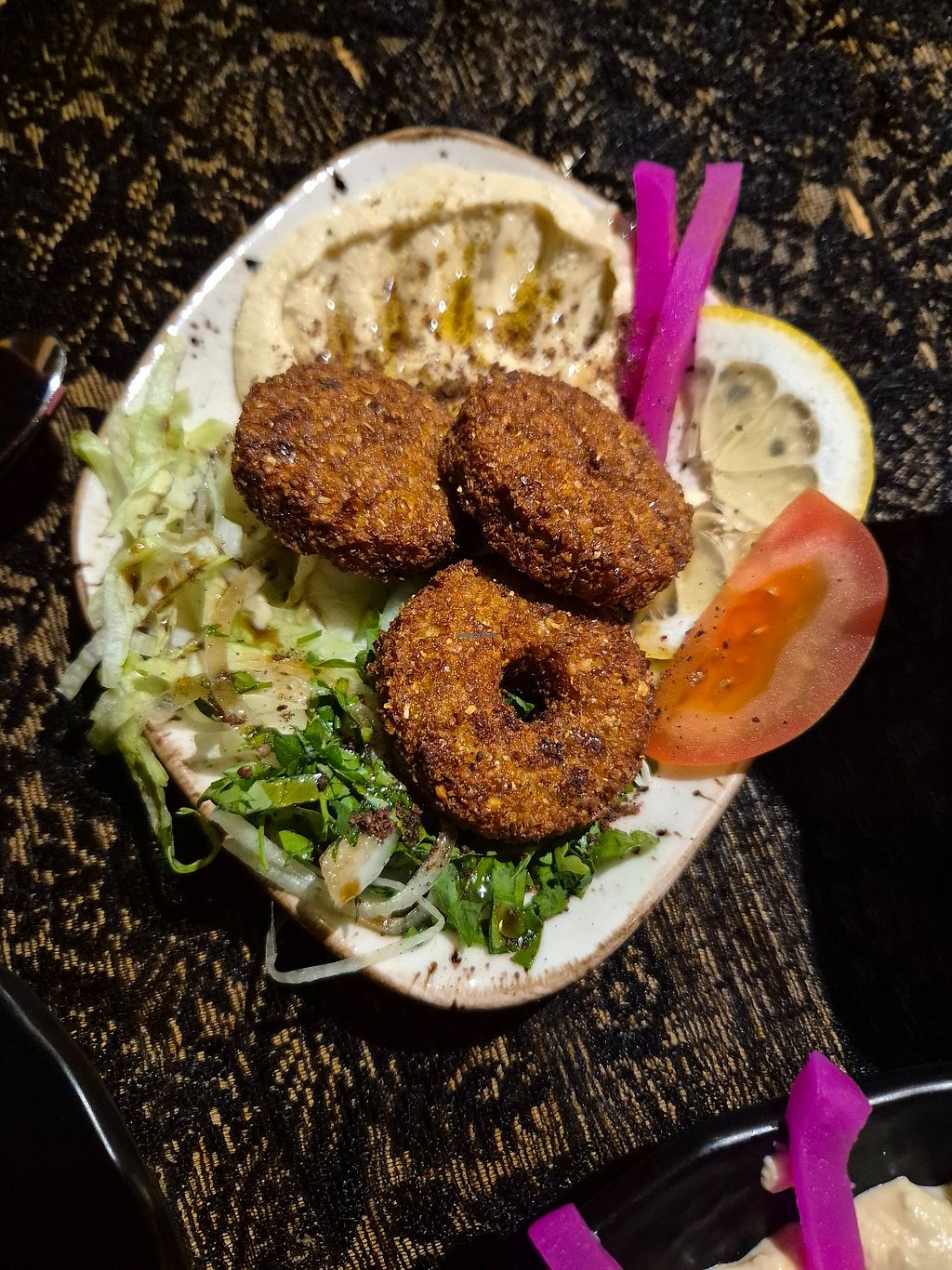 We loved the vegan mezze share platters. So fresh and tasty! Best falafel, clearly made in-house. Syrian tea was also yummy. Just what we needed on a cold rainy night. Lovely ambience and the waiter was very helpful in choosing the vegan options.