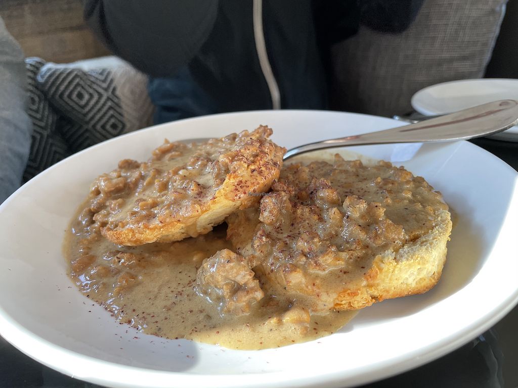 My boyfriend and I love the brunch here! Okay got the cheesy grits and my boyfriend got the biscuits and gravy. Both were good but the biscuits and gravy were the best! I would recommend this play to anyone vegan or not!