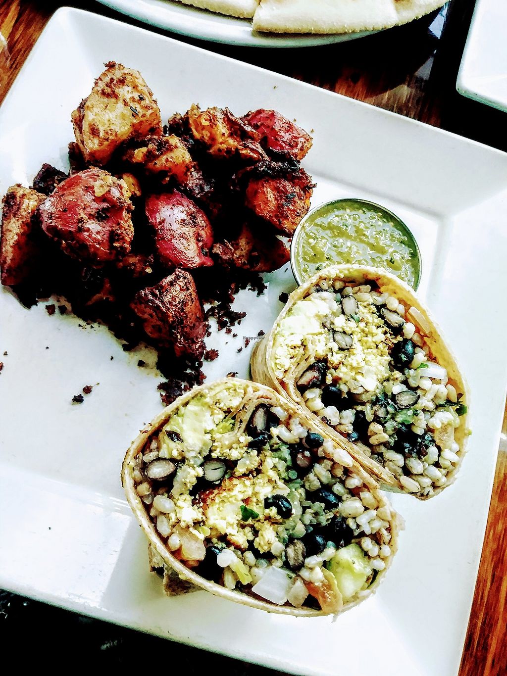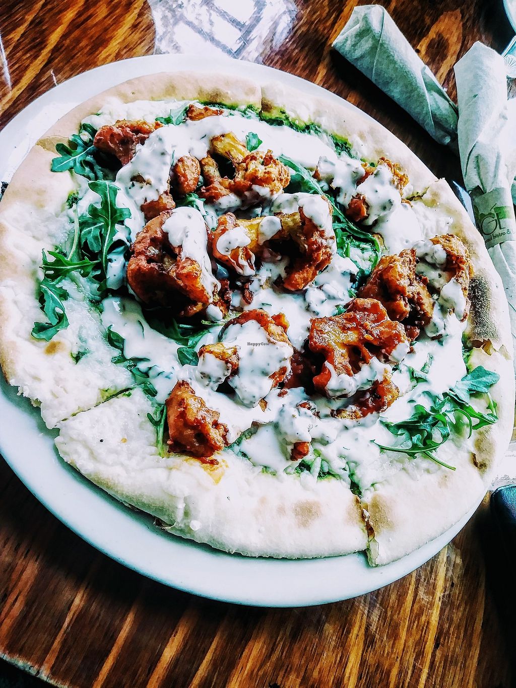 We were a large group and all enjoyed meals. Cauliflower is hyped. They are good. Worth a try. Pesto burger (which is a tempeh patty) was very good. Fries were great. Others enjoyed lasagne, eggplant farmasan, orange chick-un. The icea cream was also very good. Was there with 5 non-vegans who discussed trying the other branches since they liked this one.