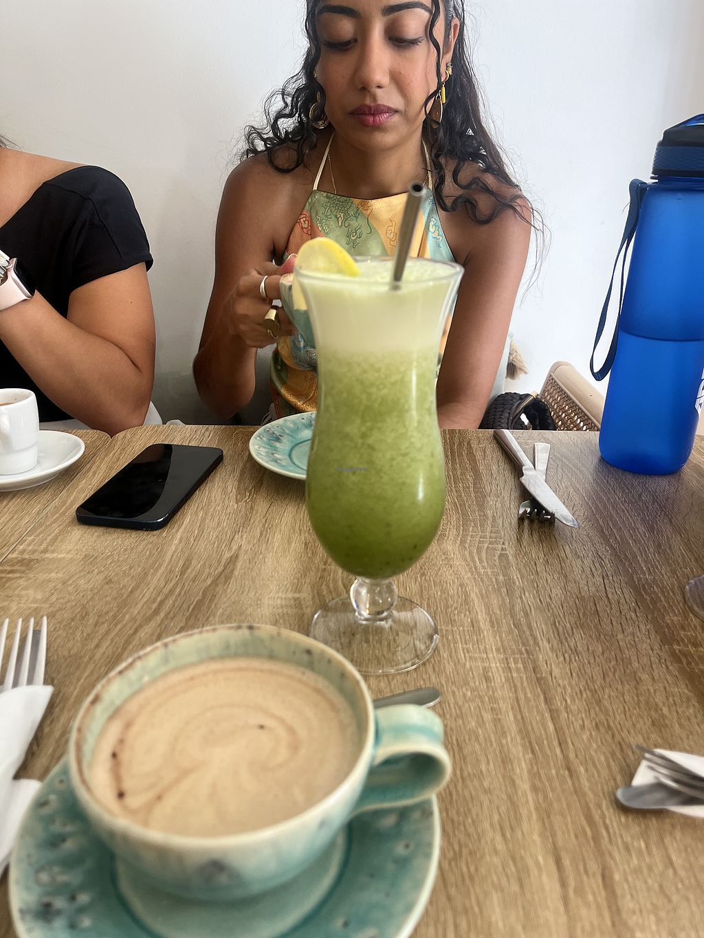 Great coffee with vegan milk and a few vegan options for brunch. Beautiful interior desing!