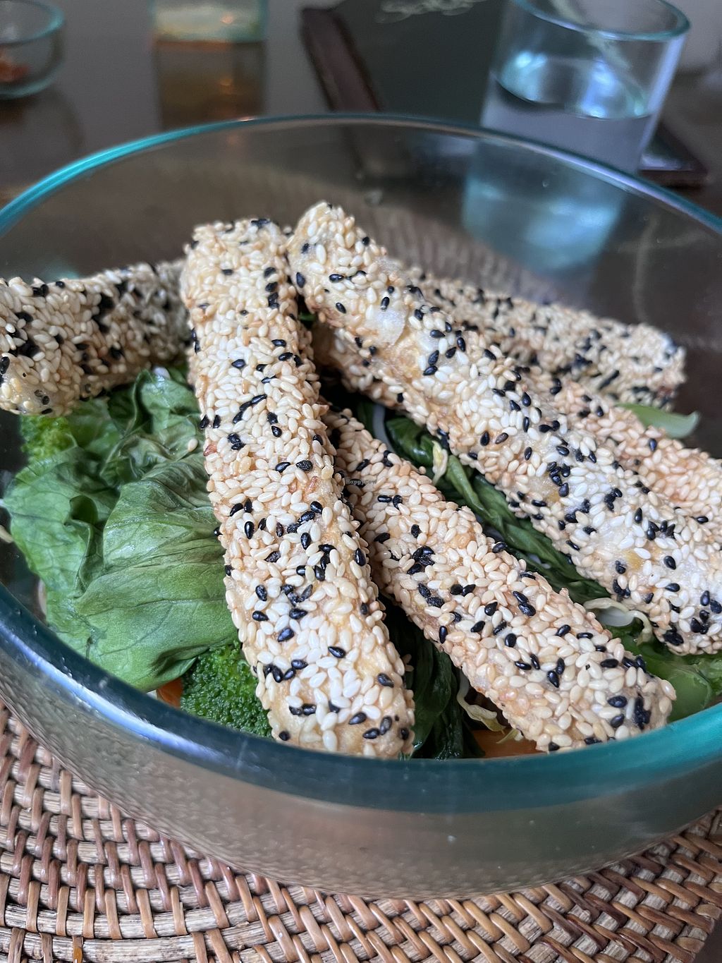 Kartoffeln, Bohnen im frietiertem teigmantel, einen leicht scharfen di…
