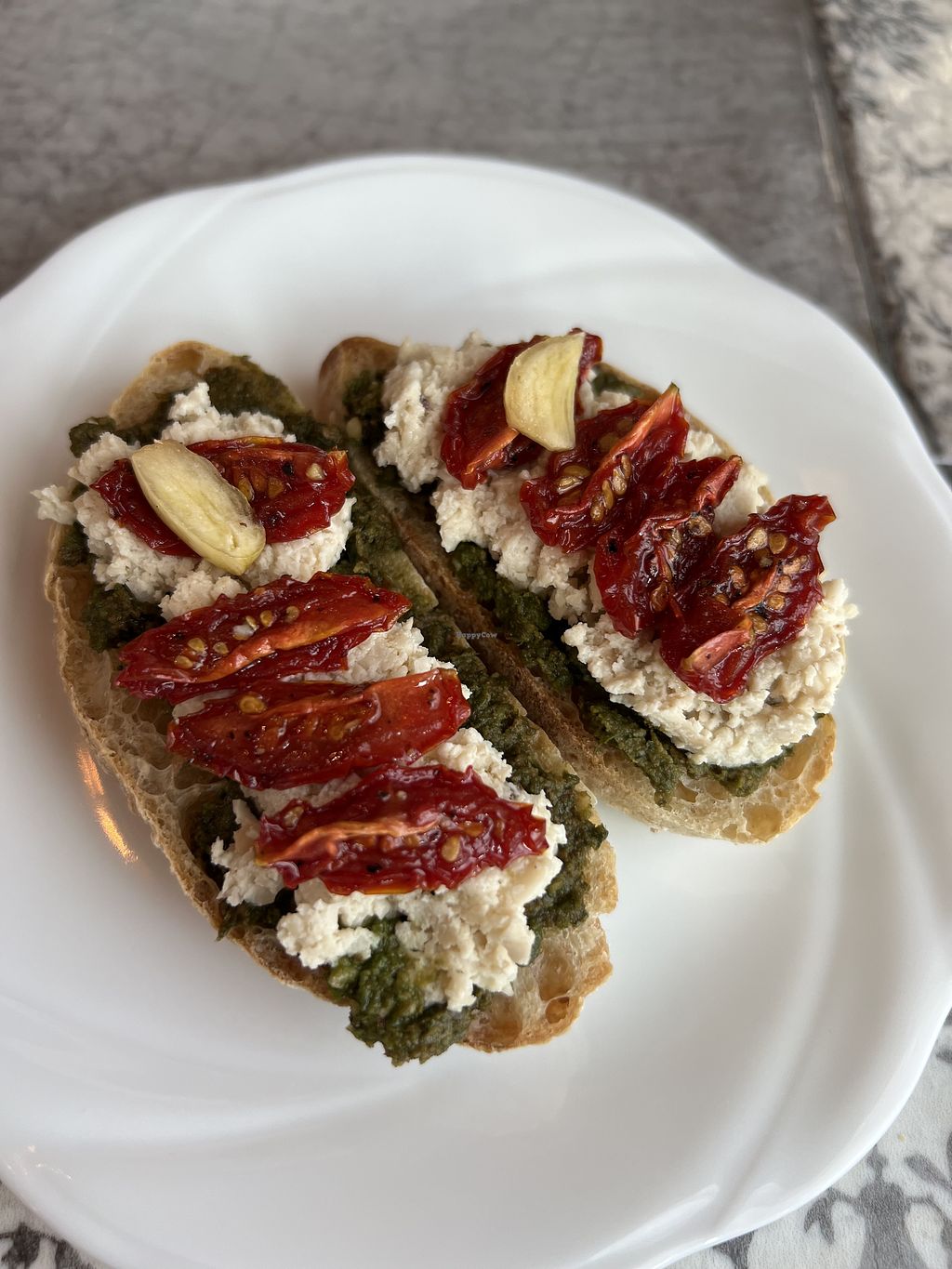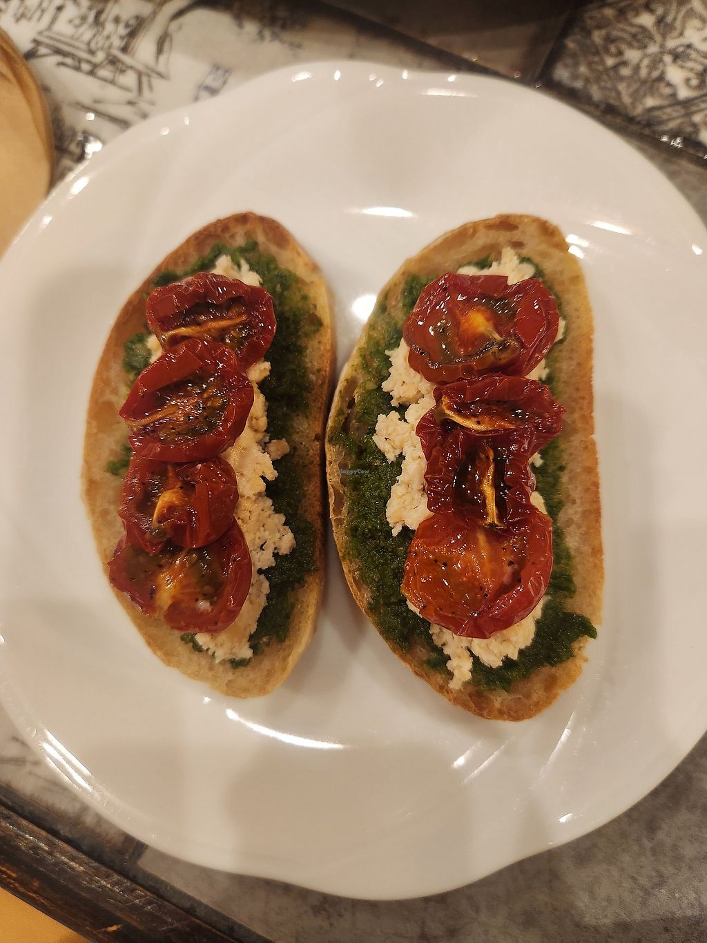 Tasty vegan pesto & tofu bruschetta