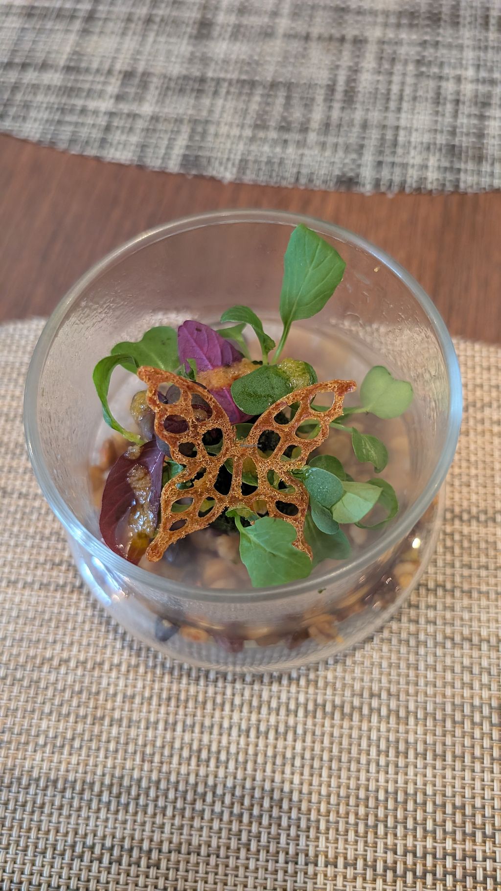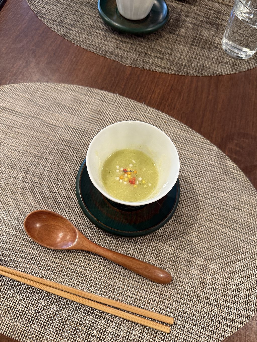 My fiancé and I had booked our reservation for lunch and it was superb! The waitress and chef were very friendly and nice. I speak a little bit of Japanese but if you don’t speak any Japanese that wouldn’t be an issue as the waitress spoke English to us. The atmosphere of the restaurant was peaceful and we had a pretty view of the flowers from the next door garden shop at our table by the window. We each got two drinks. I really enjoyed the kombucha and the apple juice was delicious. My fiancé had a whiskey highball and a fruity soda and he enjoyed both. For the first part of our courses we both had soup which was Jerusalem artichoke soup that was perfectly made. My fiancé is a picky eater but he absolutely loved all the food. Next our salad was not only a visually stunning with smoke and a beautiful sculptural presentation, but the taste was scrumptious. I loved the “moss ball” that the salad leaves were “growing out of”. The “moss ball” was delicious vegan cheese and the “pebbles” were perfectly cooked lentils and beans. I think the “butterfly” on top was delicately crafted from puffed rice? It was gorgeous. I loved the imagination the chef had, it was definitely a delight for all of the senses! My fiancé had the ramen for the main course with chlorella noodles and he loved the faux vegan egg, I tried it too and it was the best I’ve ever had! I had the unagi and it was perfectly prepared. I savored every bite. I would eat that unagi everyday if I could! I also loved the miso soup and pickled veggies on the side. For dessert, we both got the apricot sorbet which was served on top of a gorgeous parfait and topped with another delicately constructed (puffed rice sculpture?) this time in the shape of a leaf. The apricot was so flavorful! It almost reminded me of mango because it was so fruity and juicy! I’ve never had an apricot that tasted that good, I loved every bite! The parfait part of the dessert was also amazing. The granola, berries, and vegan yogurt were the perfect balance of sweet and tart. The dessert was perfectly harmonious and a wonderful ending to an incredible meal experience. I highly recommend Saido and I can’t wait to book another reservation when I travel back to Tokyo in the future. ごちそうさまでした ❤️