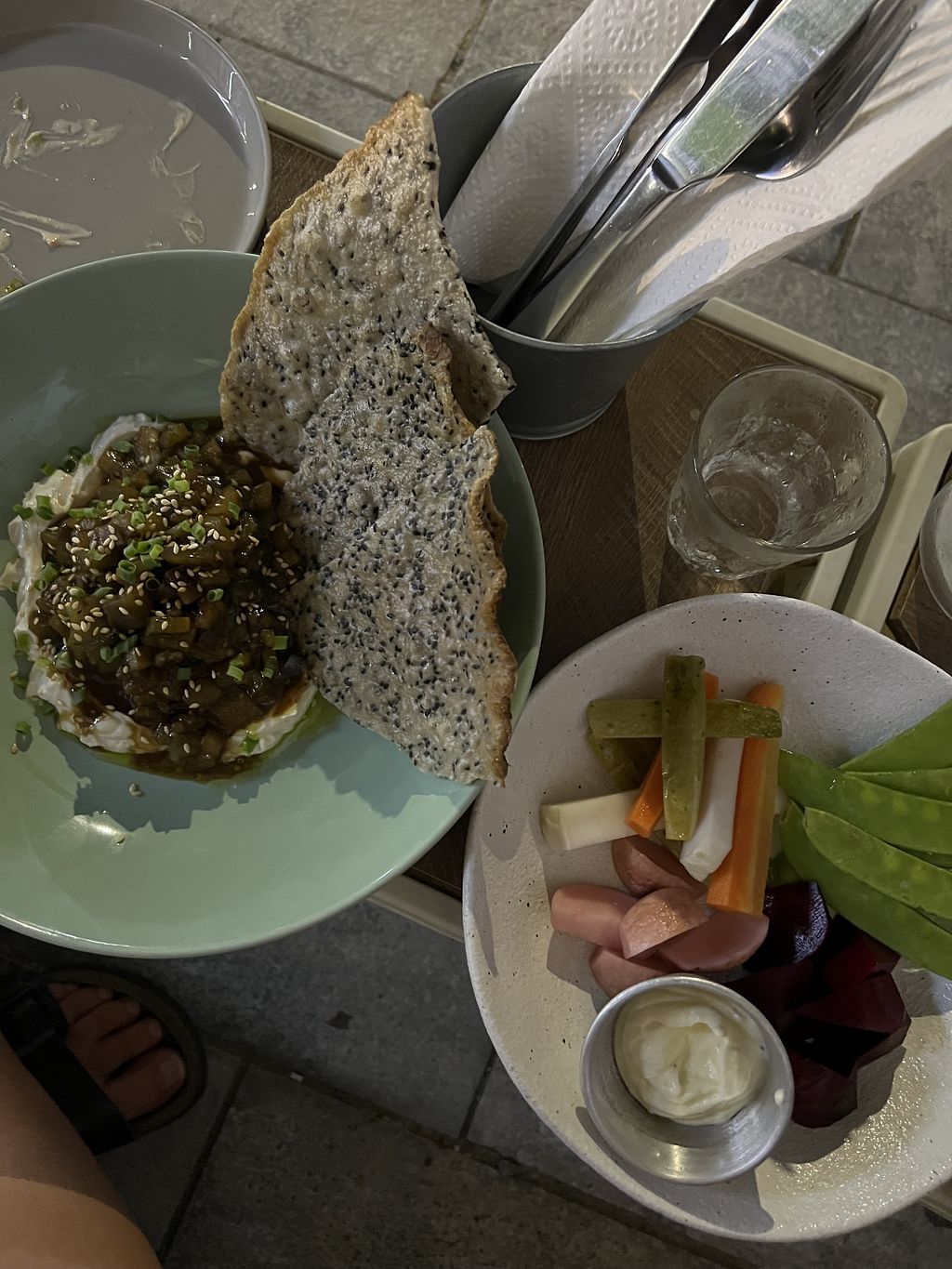 We were just popping by the wine bar below, am pm (same owners) and then looked at the menu and had a few snacks. The raw veggies so good, bao buns. Really cool setting too.
