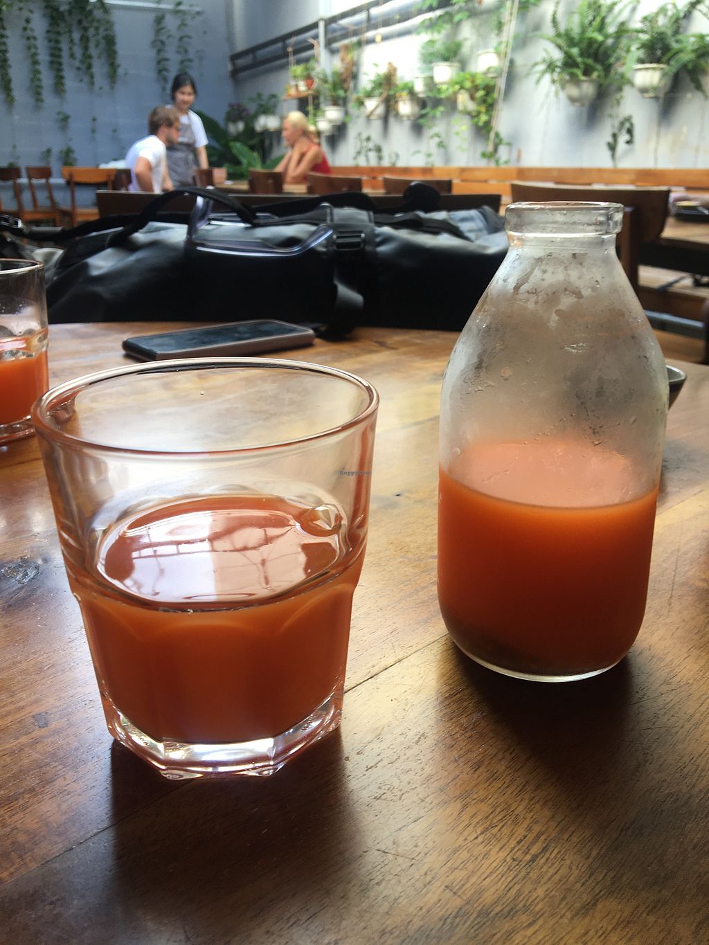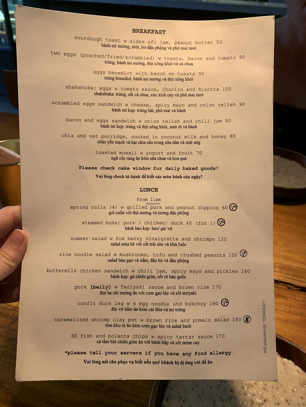 Serves meat, vegan options available. Menu items are not marked for vegans, so be sure to ask. For breakfast vegans ask for chia and oat porridge with coconut milk (ask for extra fruit) which comes with honey on the side; muesli and fruit; sourdough toast with jam and peanut butter. For lunch/dinner try rice noodle salad with tofu and mushrooms. Ice blended coconut milk coffee available.