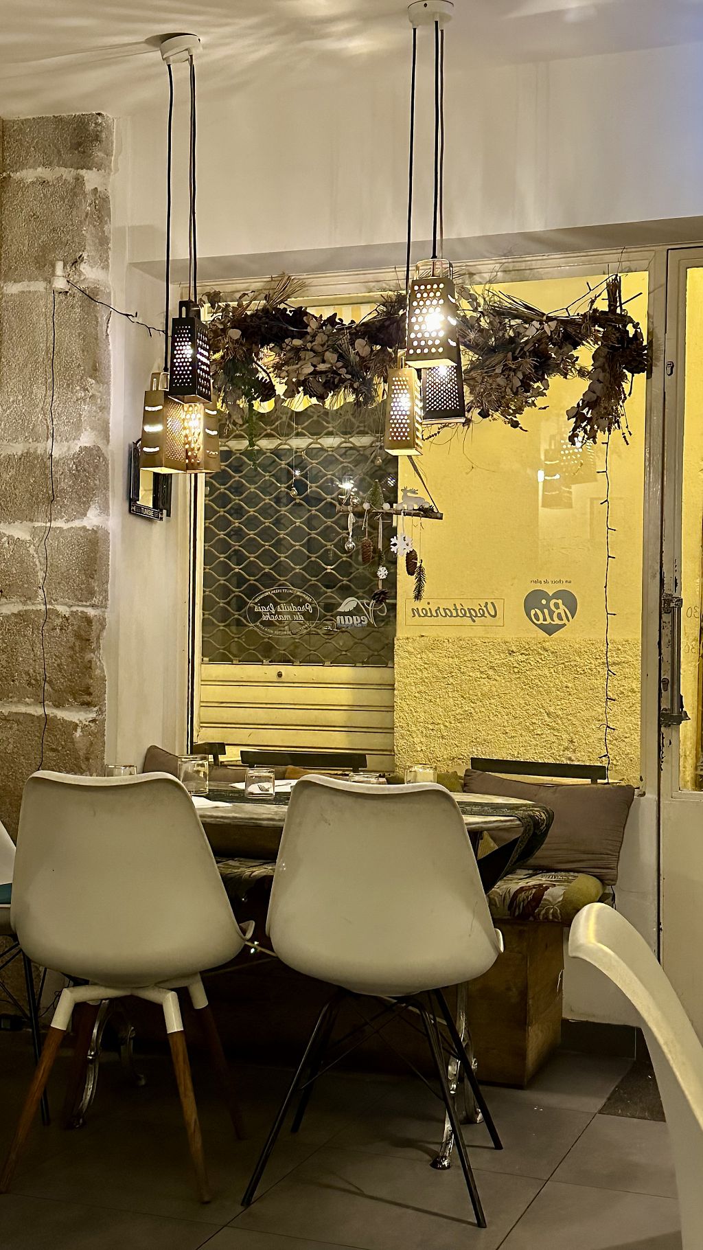 Organic, vegetarian and vegan friendly place with many vegan options. It is kind of contemporary Lebanese food. There are also tradicional options like hummus, babaganush, and zaatar. I ate a dish with artichoke that was very tasty.