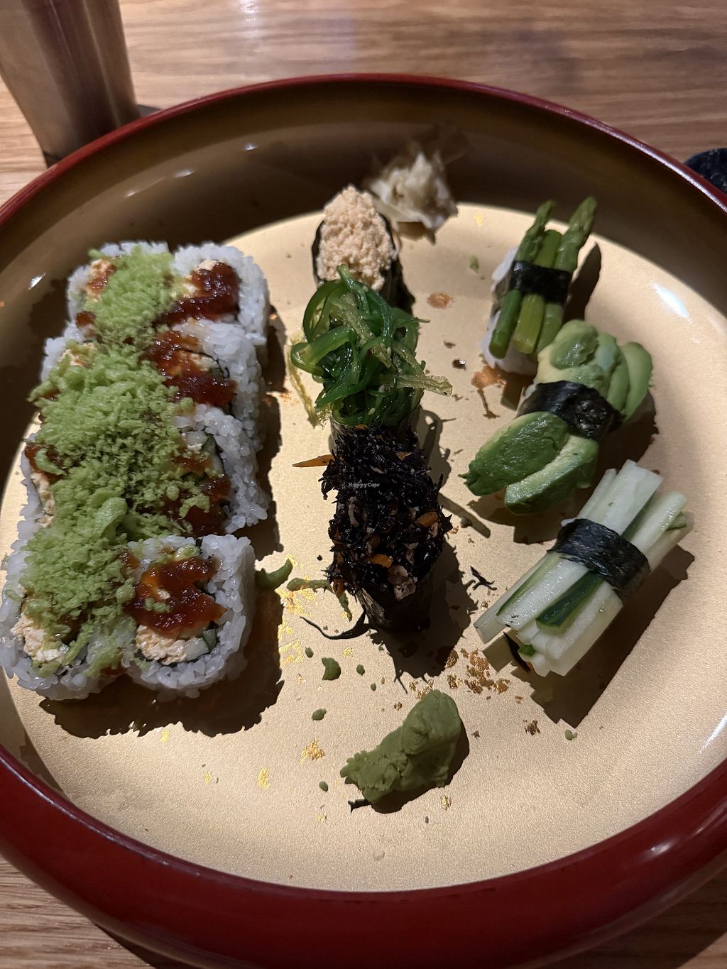 Many places “remove” to make vegan options. These vegan dishes are developed to be delicious! We 3 shared vegan California, Kamikaze, Dragon and classic asparagus/cucumber roll. Everything was beautifully presented and very flavorful. Dragon was my favorite!