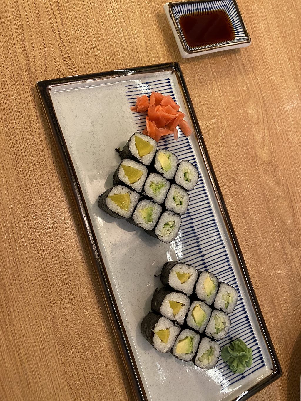 You can order different types of sushi, e.g. with cucumber, mango, avocado and so on.