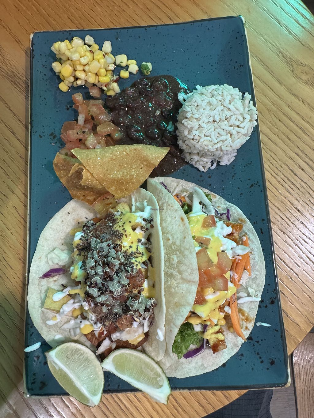 Vegan Two Tacos Combo Plate Spicy Asian Tofu and Jackfruit Kebab #Vega…