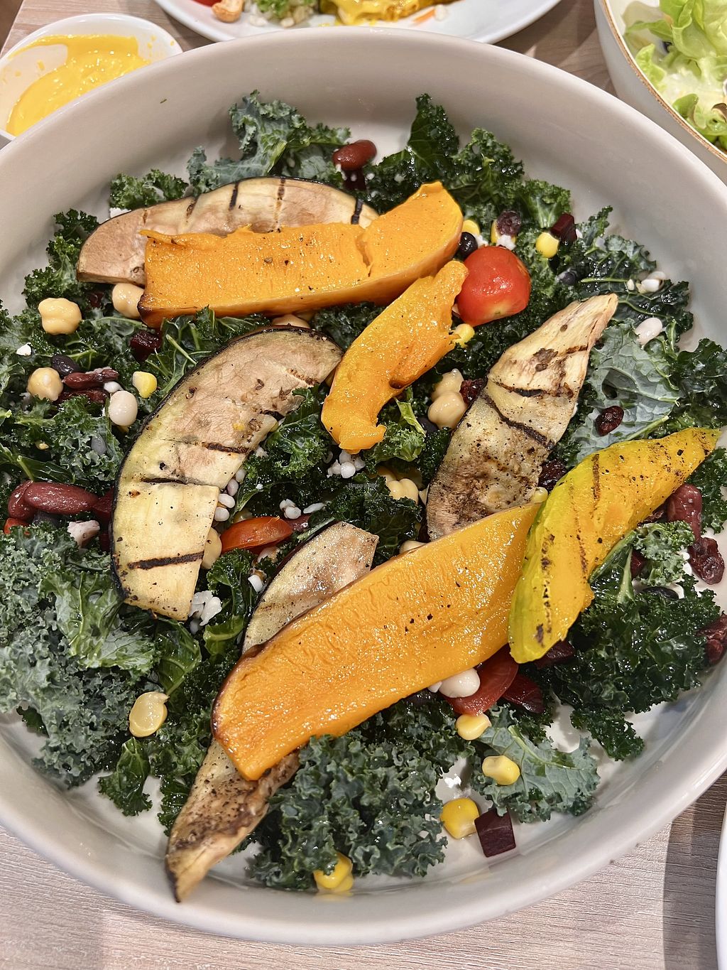 This is a popular chain restaurant. Lots of vegan options to choose from and range of vegetables and proteins including build your own options, açai bowls, smoothies. We ordered a factory grain salad & kale salad with pumpkin dressing, refillable green tea & mojito soda. Food took a while but we did come at a busy time. Staff refilled drink without asking. Massive portions. Really great with lots of toppings, nice pumpkin dressing (quite sweet).