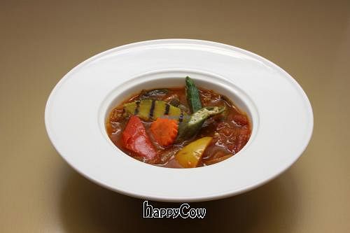 tiny protions of rice (tasteless and cold), pumpkin soup (tasteless) a…