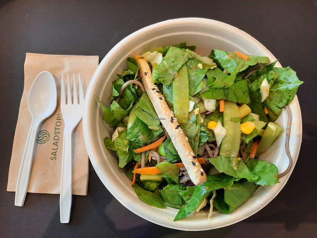 Serves meat, vegan options available. Quick service salad bar chain offering create-your-own salads and bowls. Choose from ingredients like soba, tofu, mushrooms, alfalfa, brown rice, beans, and nuts. Or choose from the already-vegan pre-designed menu items (vary by region). Reported closed November 2022.