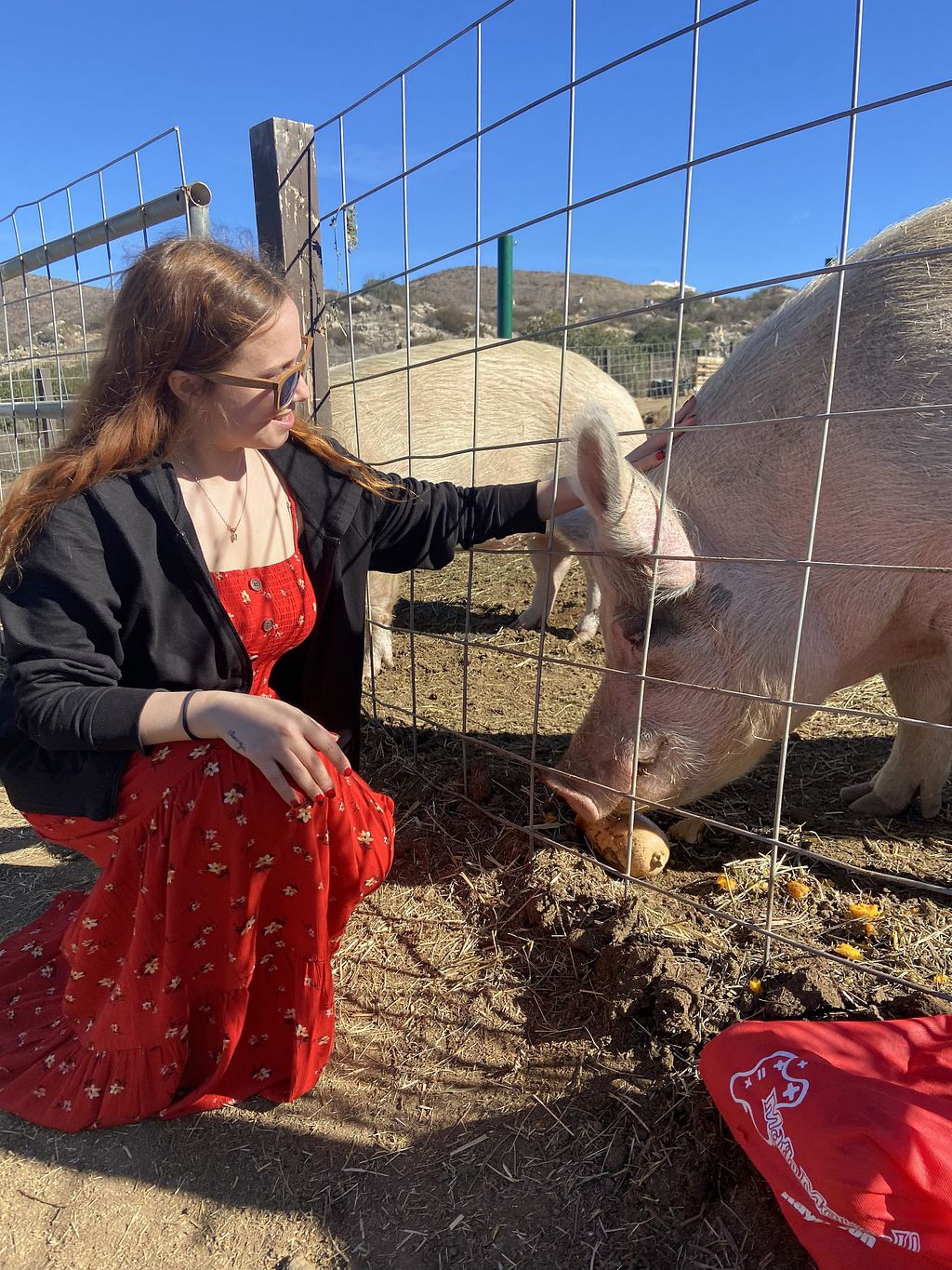 Feeding squash to the pigs