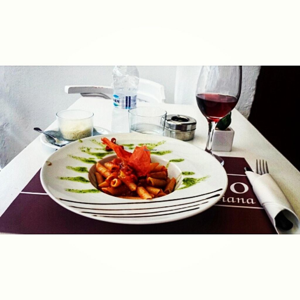 Italian place with several vegetarian and vegan options. The arancini and pizza fritta were amazing, we also had a great salad and spaghetti pomodoro - all vegan. The spaghetti itself was fresh and thick, very good. Relatively expensive compared to other places we've been in Greece.