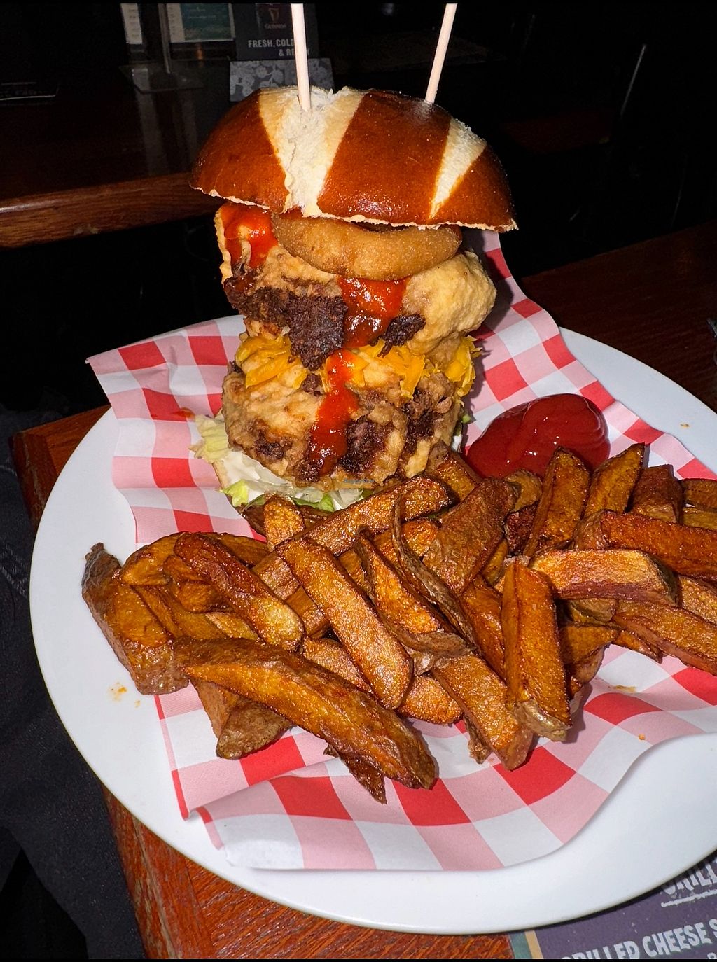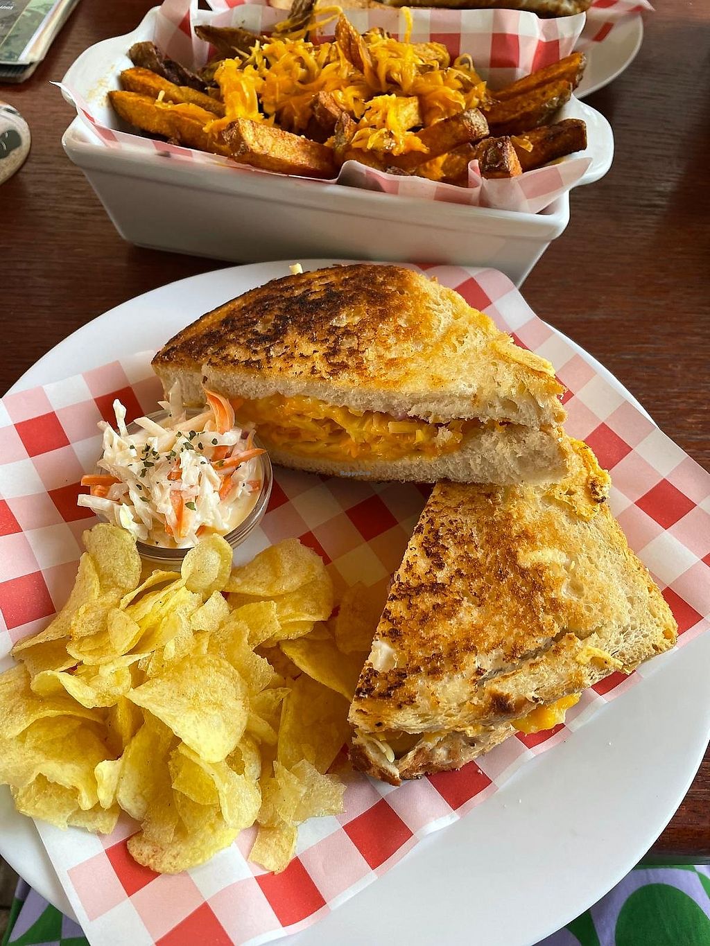 Upon entering we were immediately greeted by one of the nicest dudes, Liam. He helped us through the ordering process. Helped us pick out the best options for us and we were extremely grateful. The beer was cold and the food was delicious. The quesadilla was spicy as promised( we were looking for some heat as it was cold outside). Nachos were great and grilled cheeses were so flavorful and filling. I also had a nice burger and chips(fries). Everything was delicious and we’ll be coming back