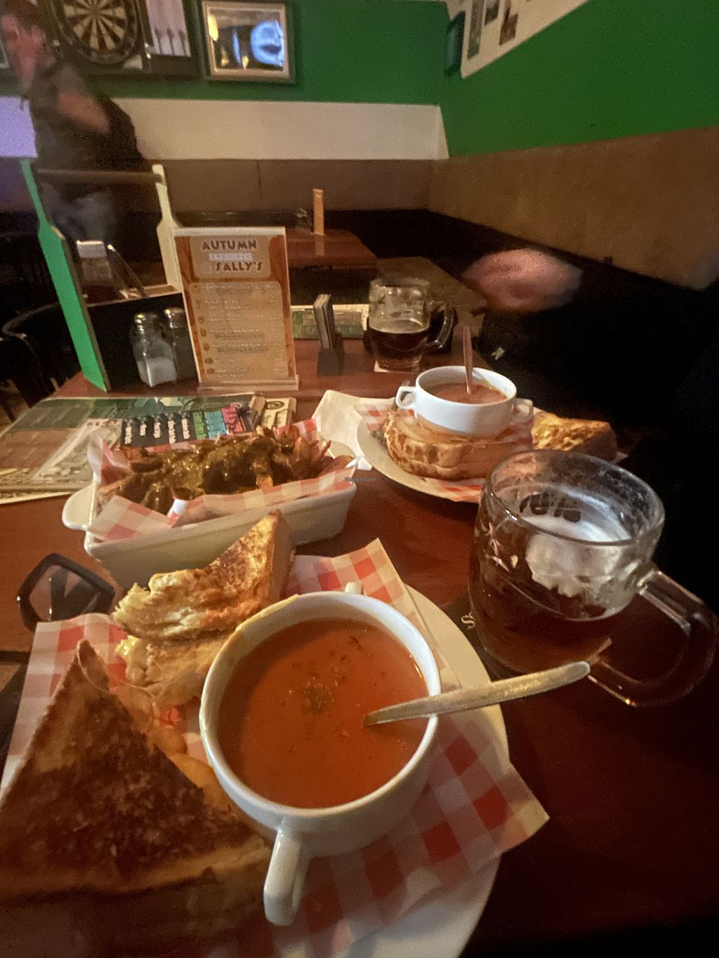 I cannot believe they’ve been open for two years and this is my first time here! It certainly won’t be my last. It’s an Irish pub with soccer on, so you wouldn’t expect it to be all vegetarian — but it is! We had the grilled cheese and tomato soup, and it was excellent and very filling. We also tried the curry fries. They were a little too spicy for us, but still good. Overall, a great place in a nice location.