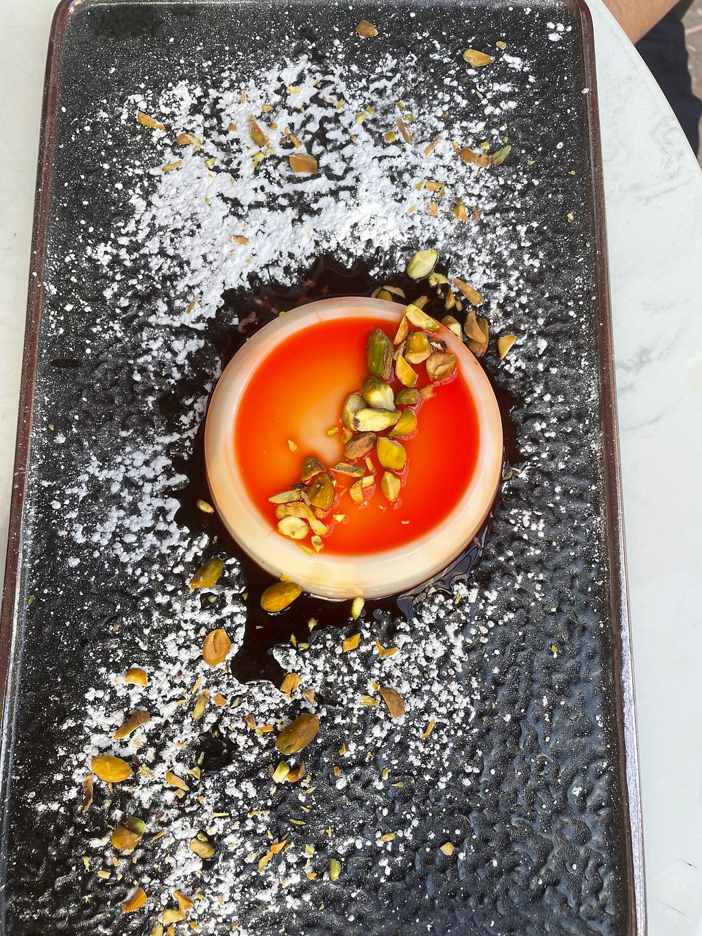 Malabi dessert (Turkish pudding with coconut cream, pistachios and ros…