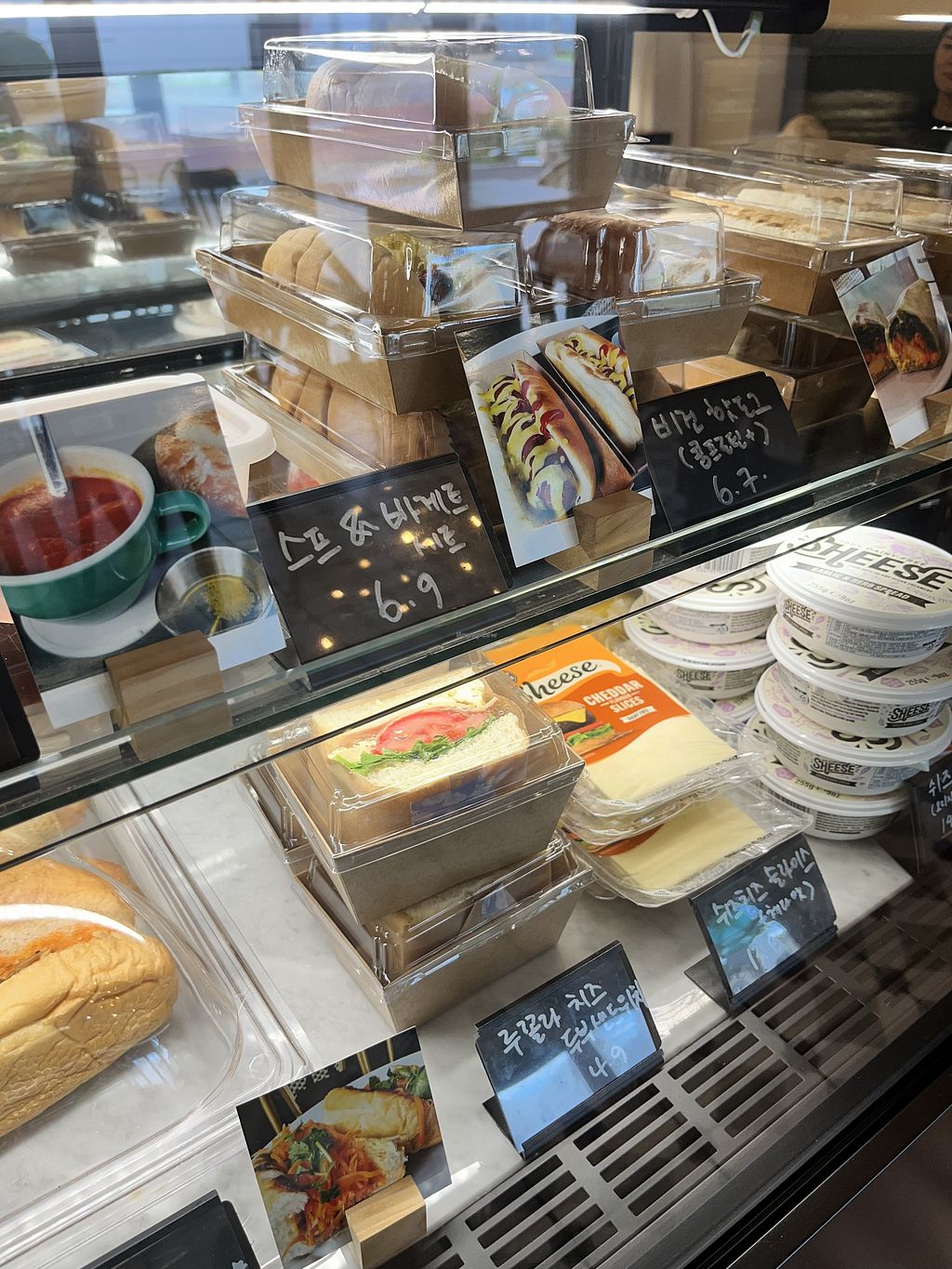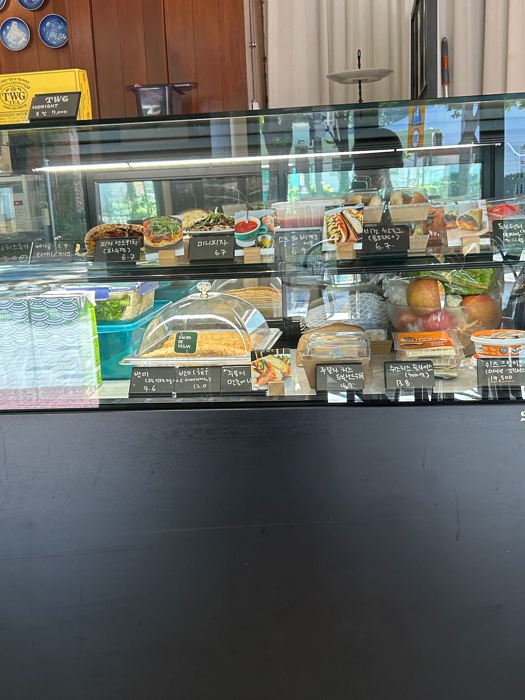 I enjoyed sitting reading my book in this cozy little place. There wasn’t much selection, but the kimchi sandwich that they had was actually delicious! And the matcha latte was yummy if a bit sweet! Would recommend. Also I thought the price reasonable. ₩14,500 in total.