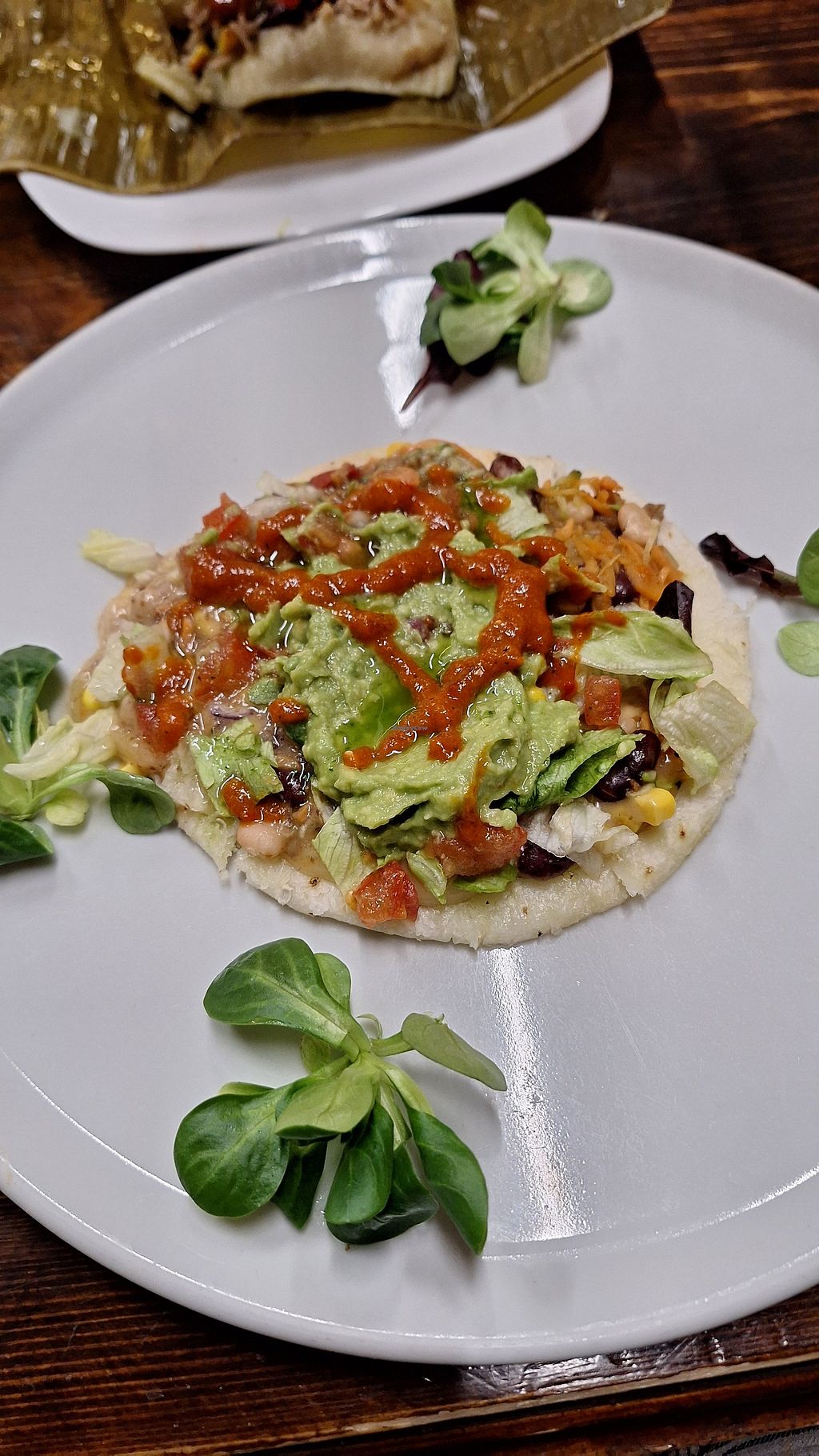 Vegan taco and an area with salad & guacamole