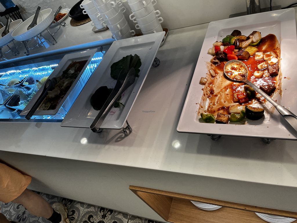 Buffet - vegan mock meat, veganized glass noodles (잡채) etc.