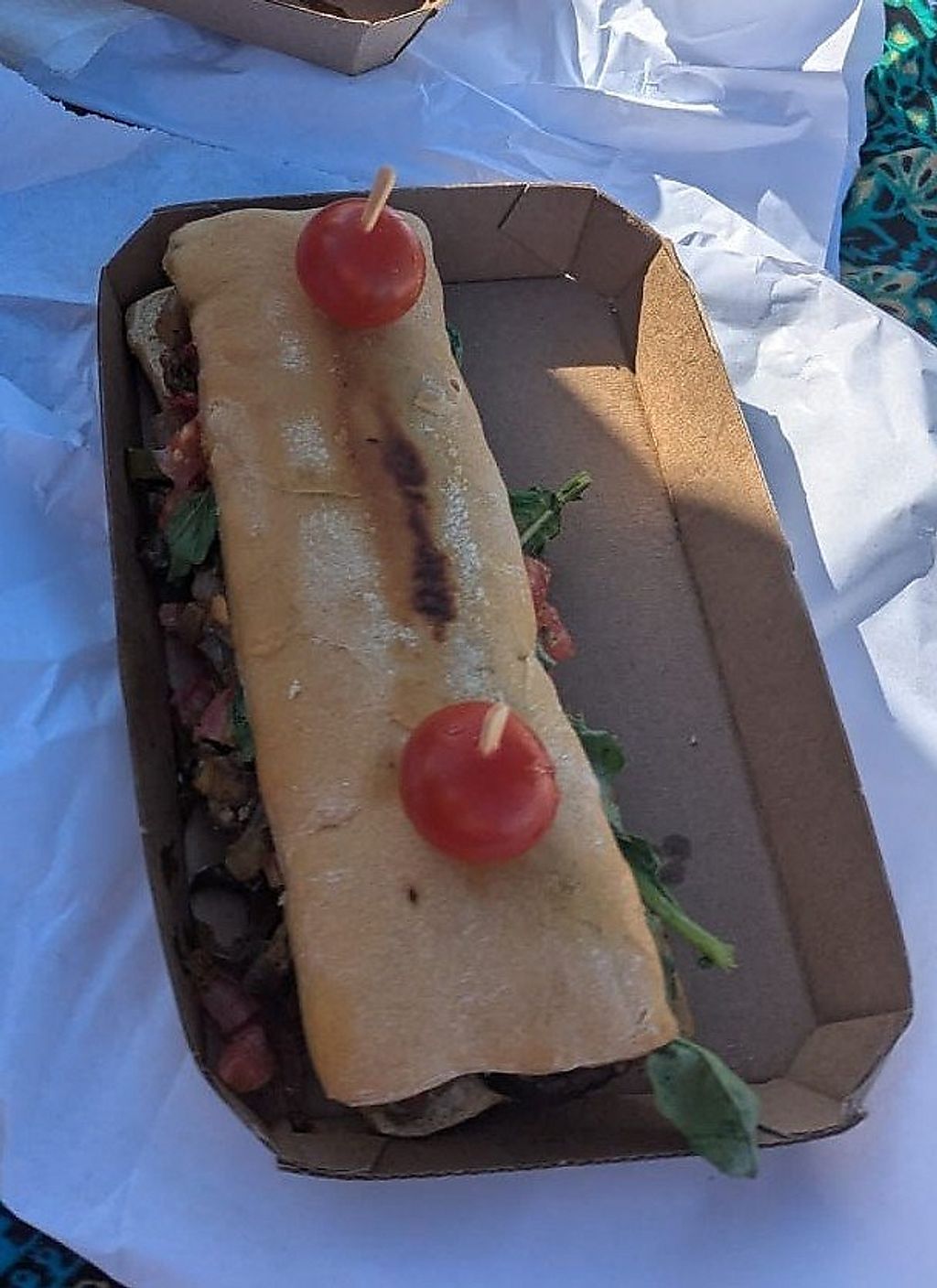Muy linda presentación y muy rica opción. Tenía morrones, berenjena, albahaca, tomate.