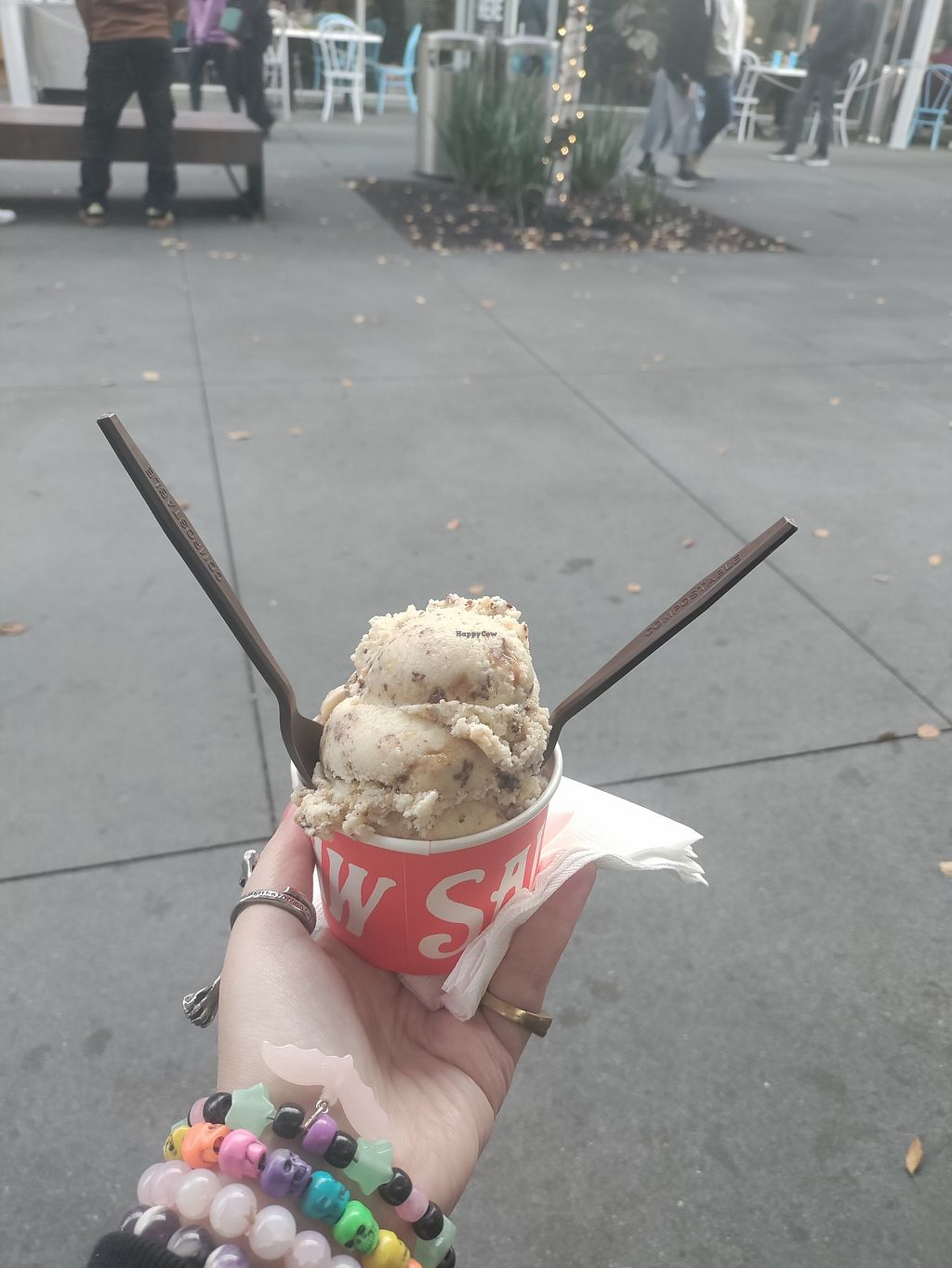 I love the unique flavors at salt and straw. I got peanut butter brittle, and I liked that it was slightly salty. There was also a vegan cupcake flavor and a few others. This is really luxury ice cream and it is pretty expensive.