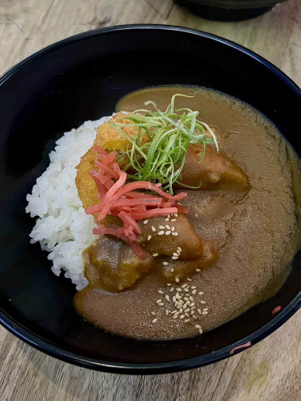 Booking recommended as it was busy on the evening we went. Friendly staff, good service and nice decor. After some deliberation (as there’s quite a bit of choice for vegans) we ordered no chicken red curry ramen, pumpkin katsu curry donburi (medium size which was quite small) and a fried bao bun apple pie for dessert. The quality & taste of the food was good and would recommend if you’re in the area