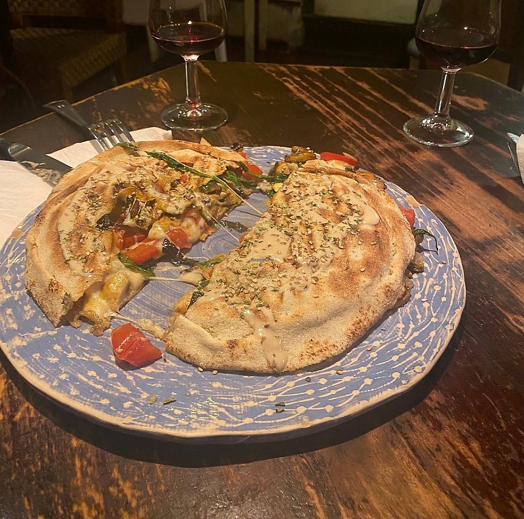 The tomatoes (with spices and tahini) on toasted flat bread.