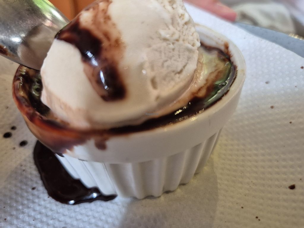 Chocolate lava cake with vegan vanilla ice creamm