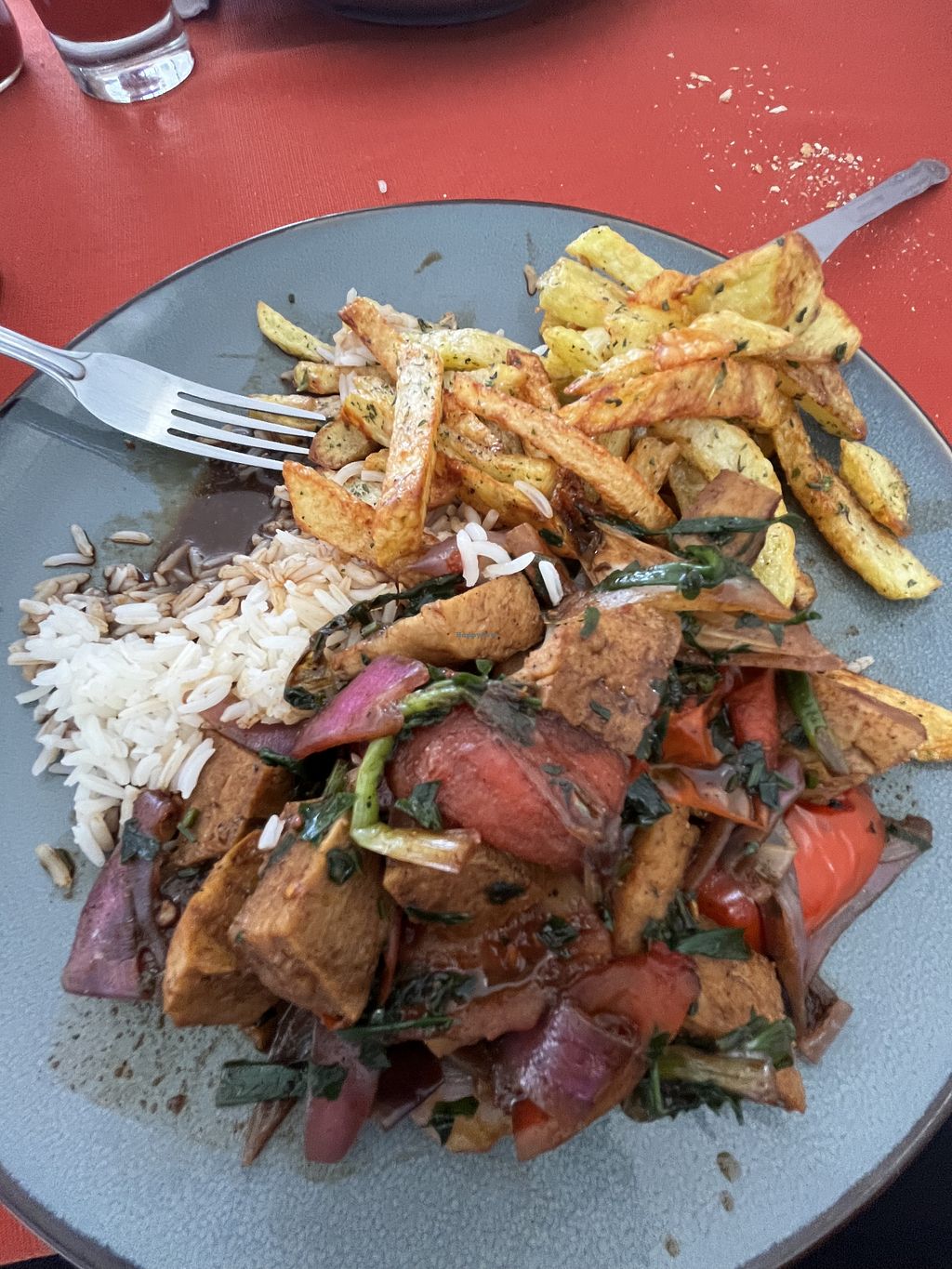 Rice with seitan and french fries - Edit