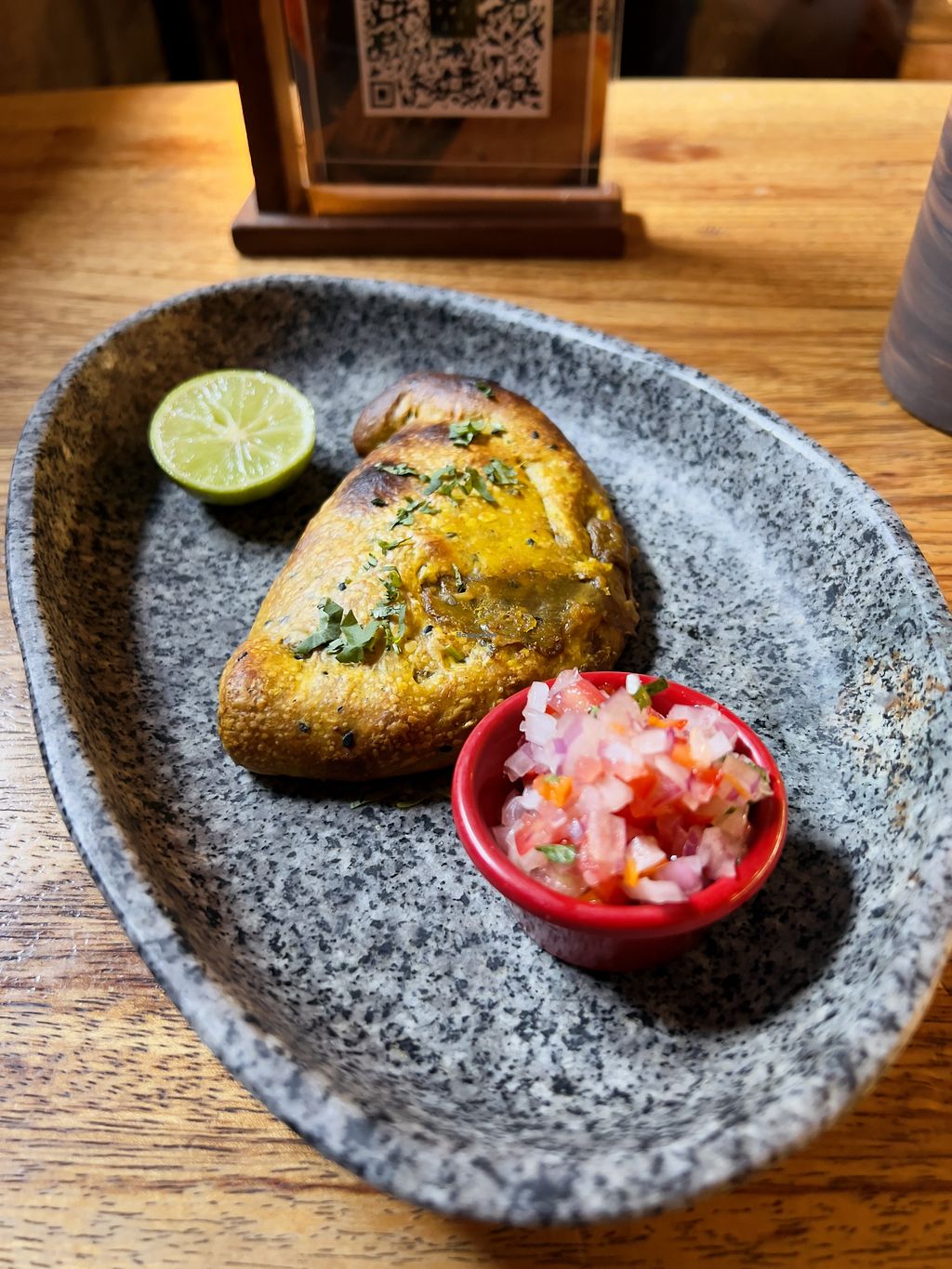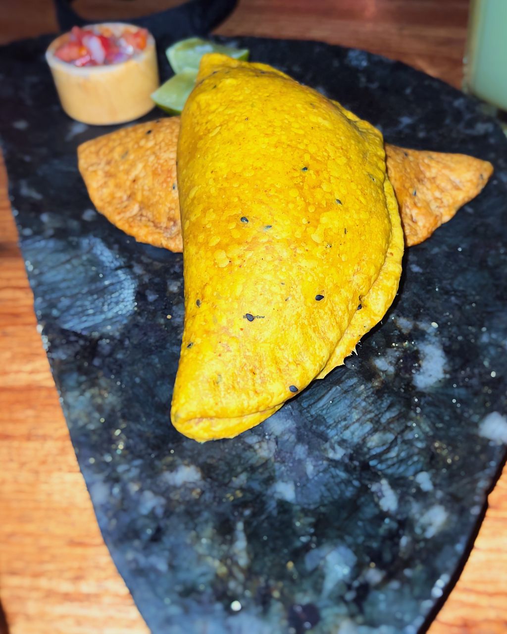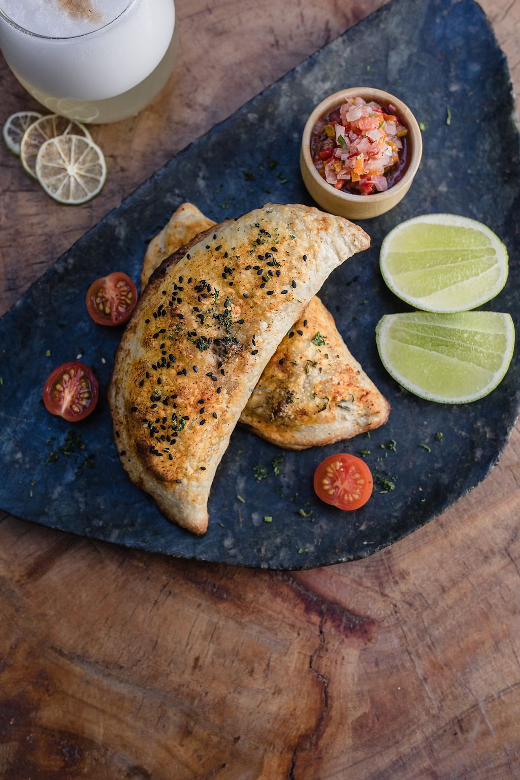 Empanada with 3 different kinds of tomatoes and empanada with “Vegalli…