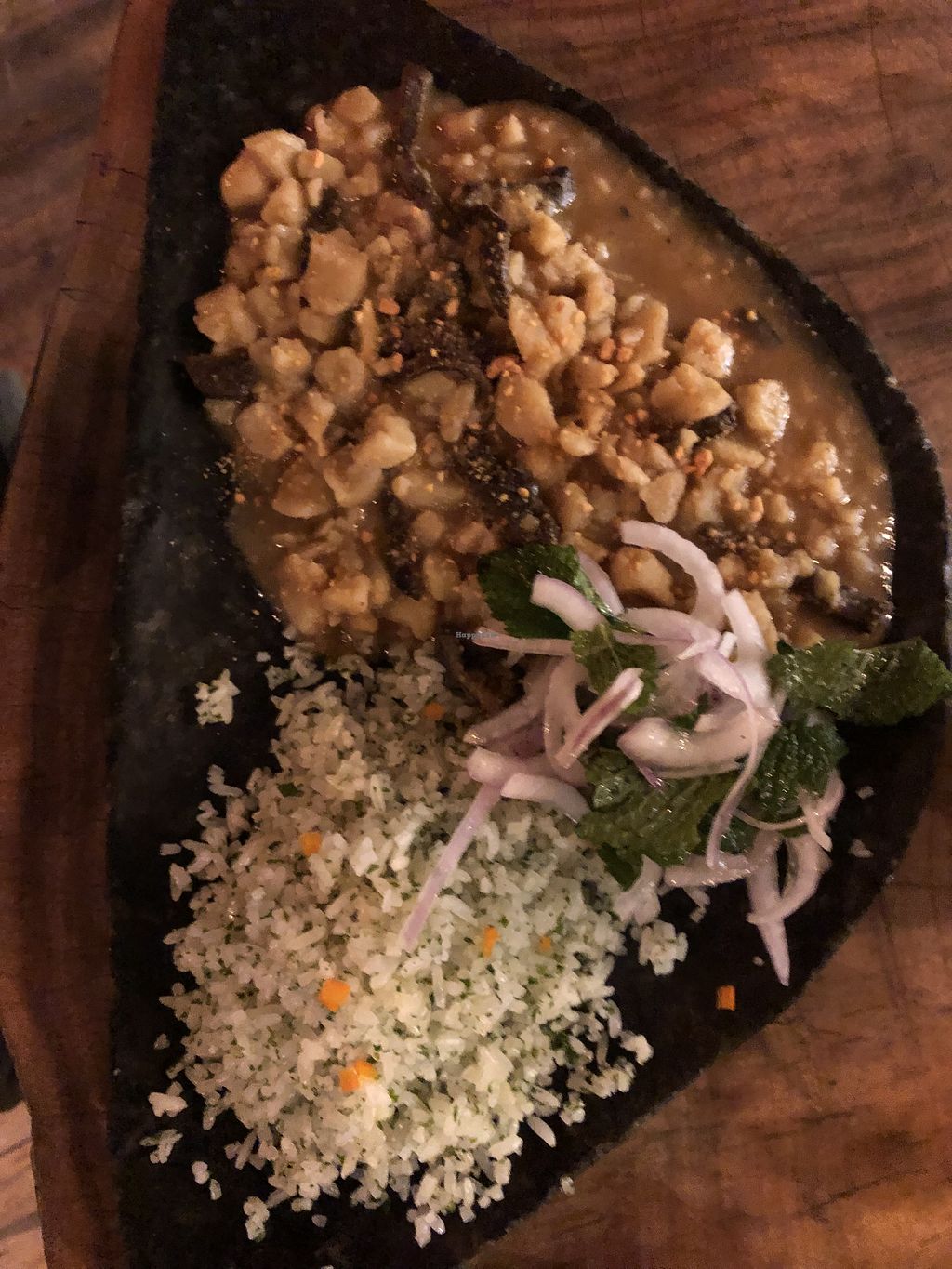 Potato, mushroom, and olive appetizer as part of the 15 sol lunch menu…