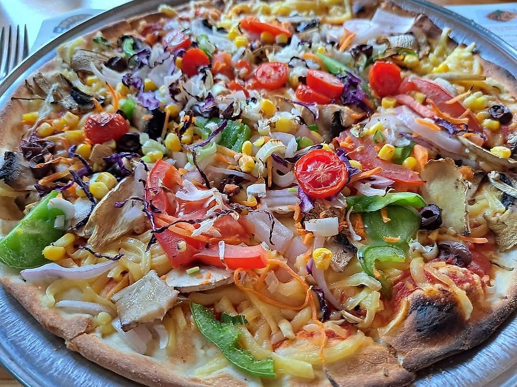 Very friendly hosts. Lovely window table with a view of the street. One labeled vegan pizza - with vegan cheese and lots of vegetables! I ordered the 27cm (smallest) option and it was plenty big enough for one. Fast service too. Very tasty pizza! Only a 5 minute walk from the nearby Vegan Gogi Hotel too. Note opening hours are 1200-2300 and closed on Sundays. They do delivery too. Can park on side streets. Recommended!!