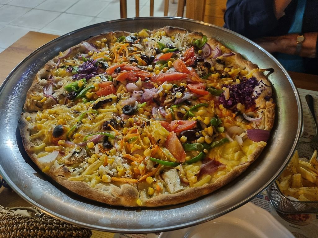 Welcoming restaurant with a vegan pizza - clearly labelled. They offered massive Salads and some starters. The pizza was fresh and tasty, probably the best pizza I've had. You can choose what veggies you would like on the pizza, I chose all of them - vegetables were very fresh! The vegan cheese was good, too. The service was excellent!