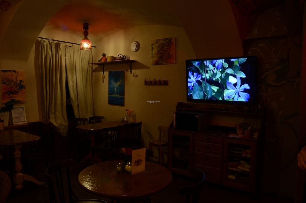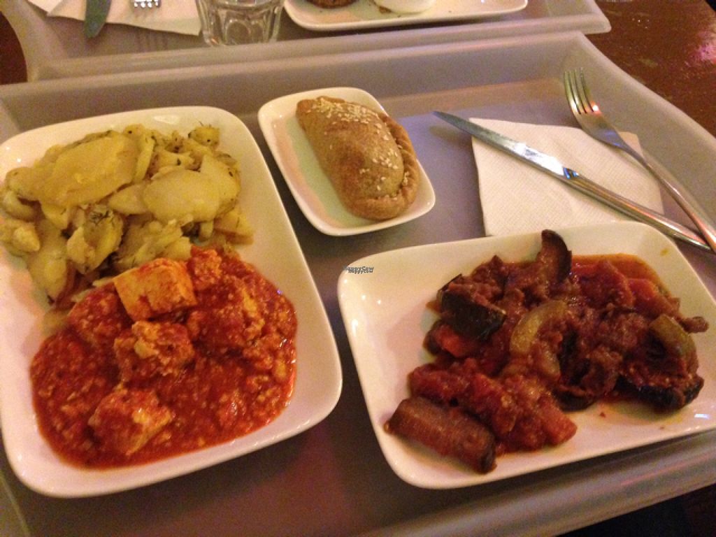 Cabbage with mushroom, chocolate cake, beet with tofu, black currant l…