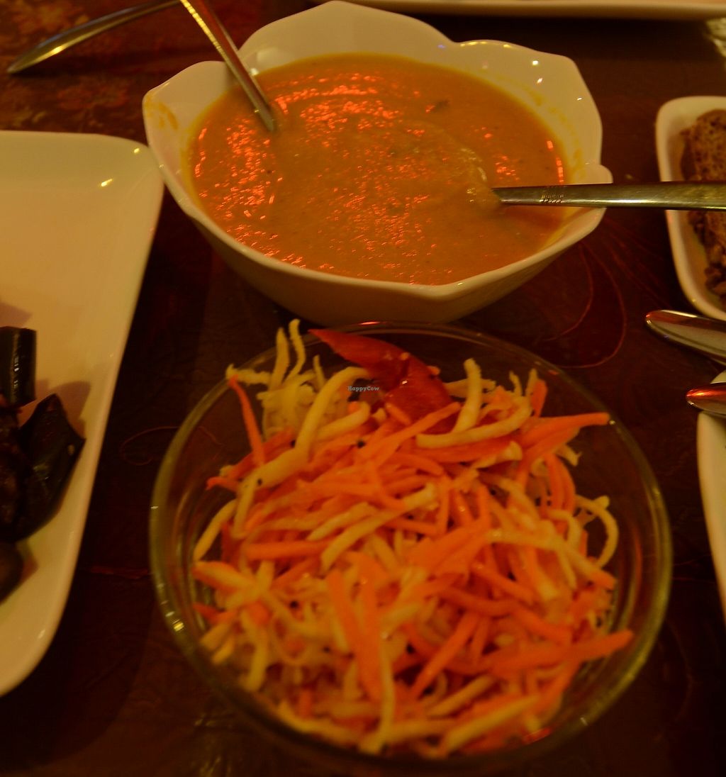 Beet salad, black currant lassi, beet with tofu, mixed vegetables