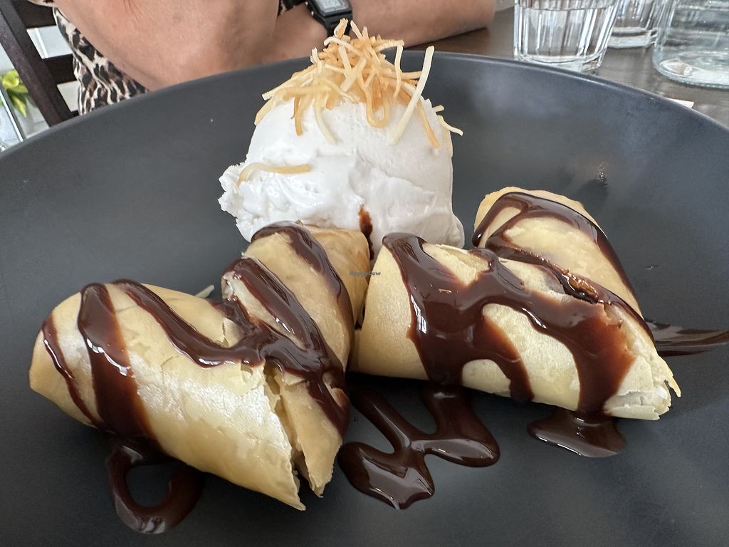 I love the coconut ice cream with banana roll so much! It’s the best vegan ice cream I have ever had! The banana roll is soft inside and crispy inside. The spicy udon noodle also really good! I will come back again one day!