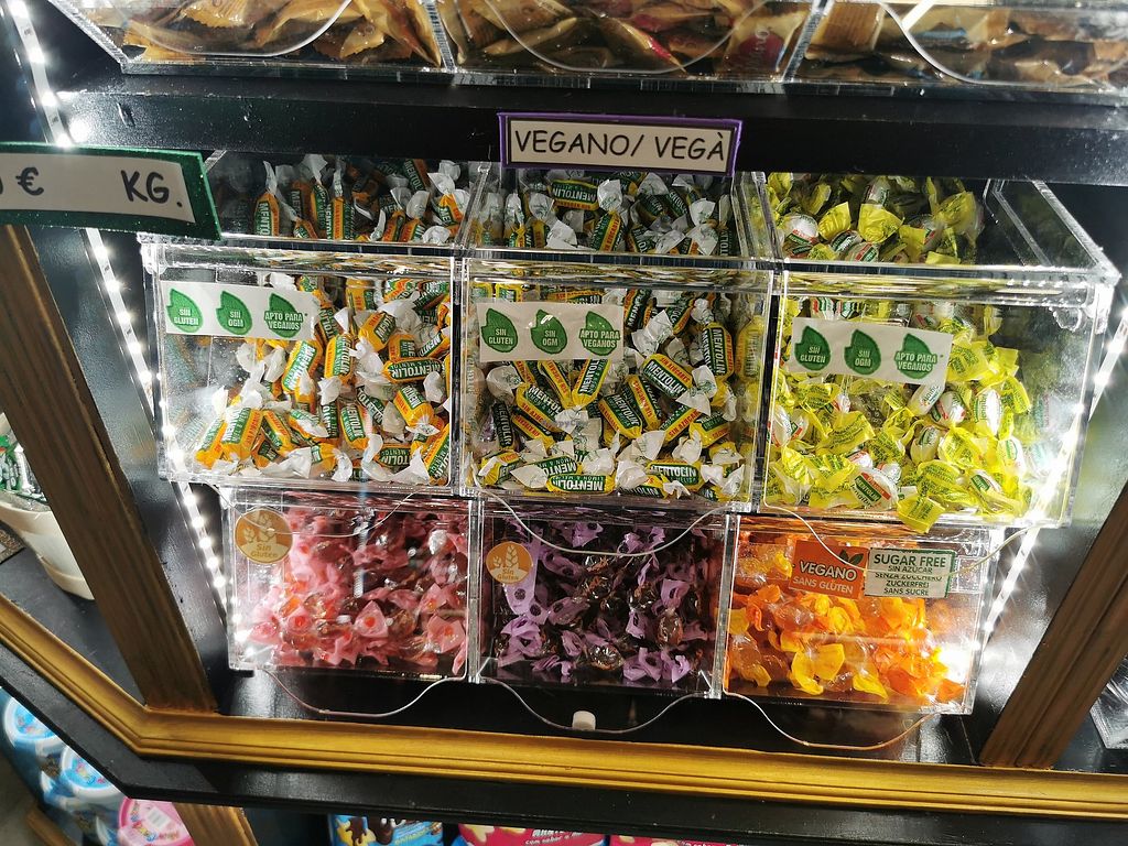 Candy store stocking vegan products. Open Mon-Fri 10:00-13:30, 16:30-20:30, Sat 10:00-14:00, 17:00-20:30. Closed Sun.
