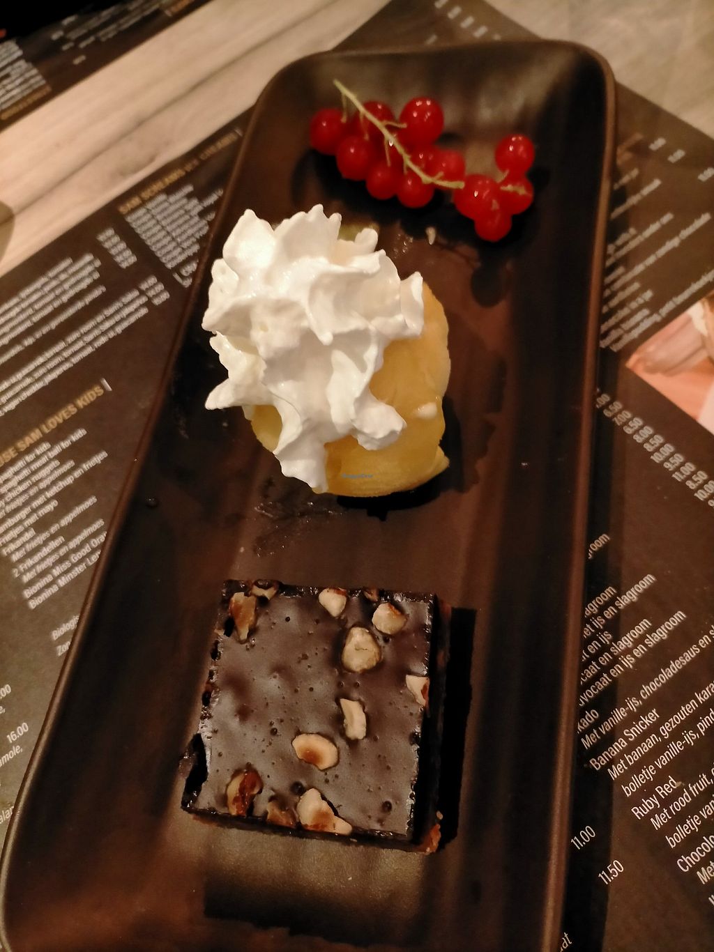 Gisteren stelden we vast dat er geen vegan hoofdgerechten op het menu stonden. De ober zei dat ze dit niet meer deden. Op de kaart stonden nog enkele finger foods (bv. kaasballetjes) als vegan aangeduid, maar de ober leek dit zelf te betwijfelen. Erg teleurstellend én misleidend! In de vestiging in Berlare zou er wel nog een vegan aanbod zijn...