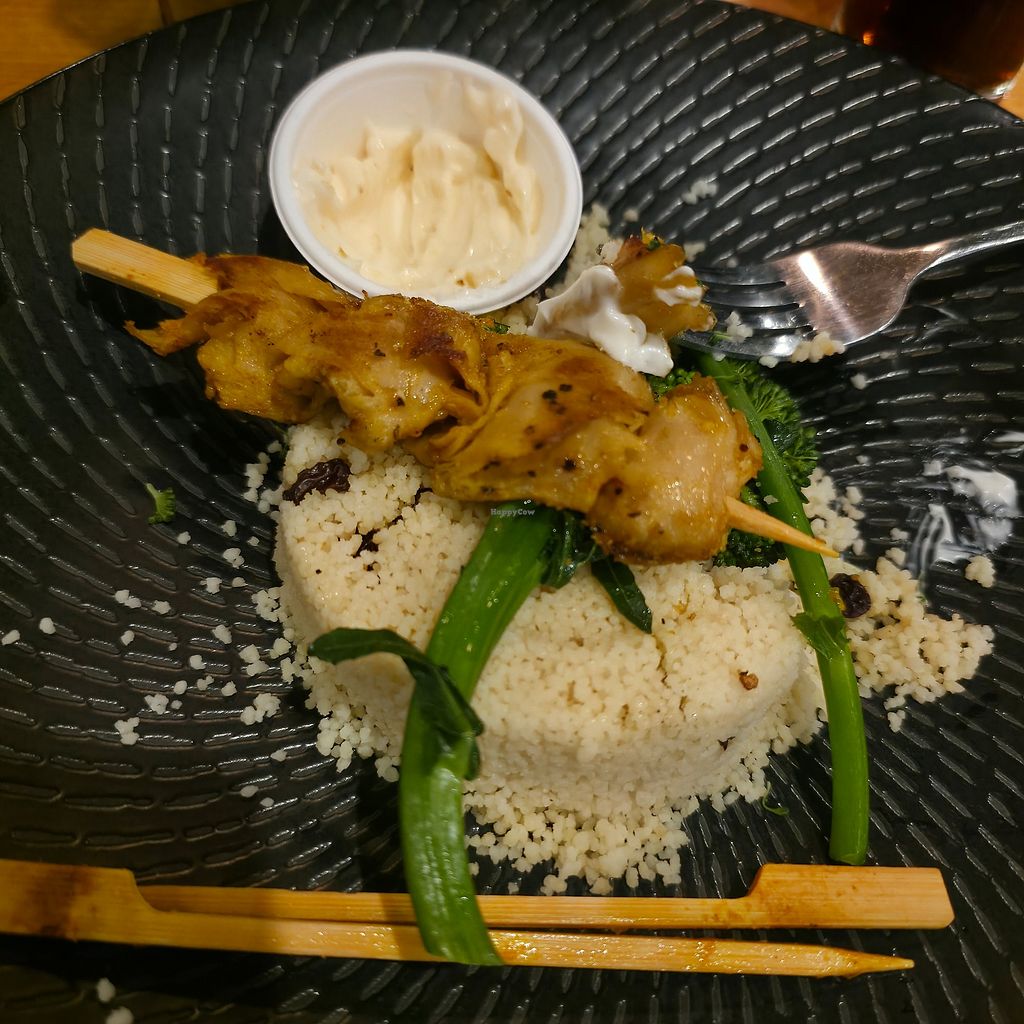 The Plant-Based Moroccan Chicken was really nice, but it was $34 and a small portion. It came with couscous, broccolini and vegan mayo. I spent $41 on a small plate of food and a Pepsi Max. I felt ripped off and I left still hungry, but it was delicious, and there are plenty of vegan options. You just have to spend a fortune to get full, so hopefully you have a smaller stomach than me. I posted a photo of the meal, but I took the photo after eating two of the skewers. You get 3 skewers in total.