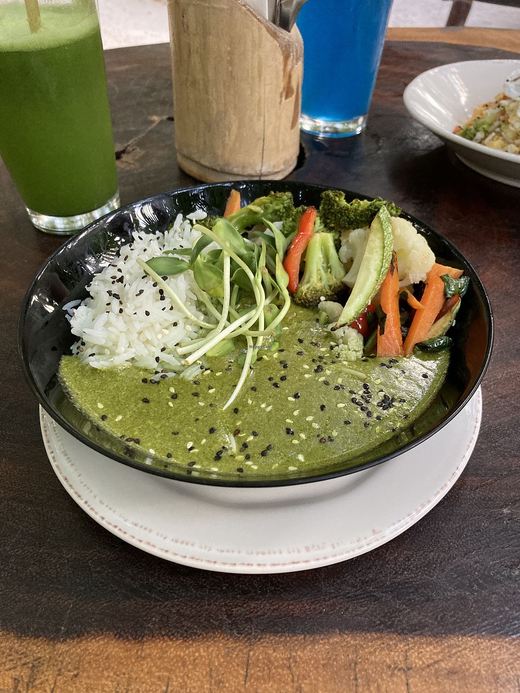 Cute low key beach cafe. I got a nice and curry bowl. It was delicious. Will come back for breakfast and the raw vegan desserts.