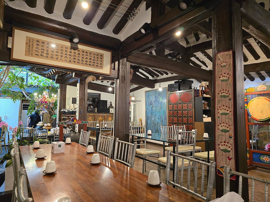 Panchan (side dishes), soups, vegetable dishes, traditional music & dance. Vegan except for a lassi drink. Started by a former monk. In Insadong area, mid way between the two ends of Insadong St, in a small street in between Insadong 8-Gil and Insadong 6-Gil adjacent to Insadong-gil. 고풍스럽고 자연친화적인 인테리어가 특색있는 한옥 구조의 사찰음식 전문점입니다. 온돌방에서 식사가 가능하며, 식사로 한정식 코스요리가 제공됩니다. 저녁에는 한국 전통 음악과 춤 공연을 즐길 수 있습니다. 가격은 점심코스 33,000원, 저녁코스 45,000원 입니다(17년 3월 기준). NOTE: Reported that caged birds are on site. Open Mon-Sun 11:30am-10:00pm.