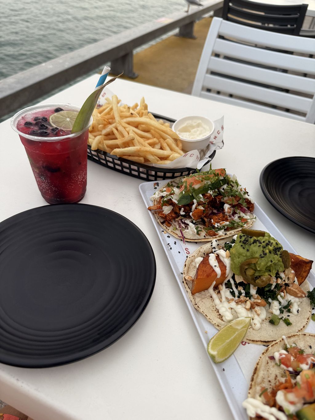 Two vegan taco options - jackfruit or pumpkin. Both AMAZING. Really nice staff. Mocktail was delish! 10/10