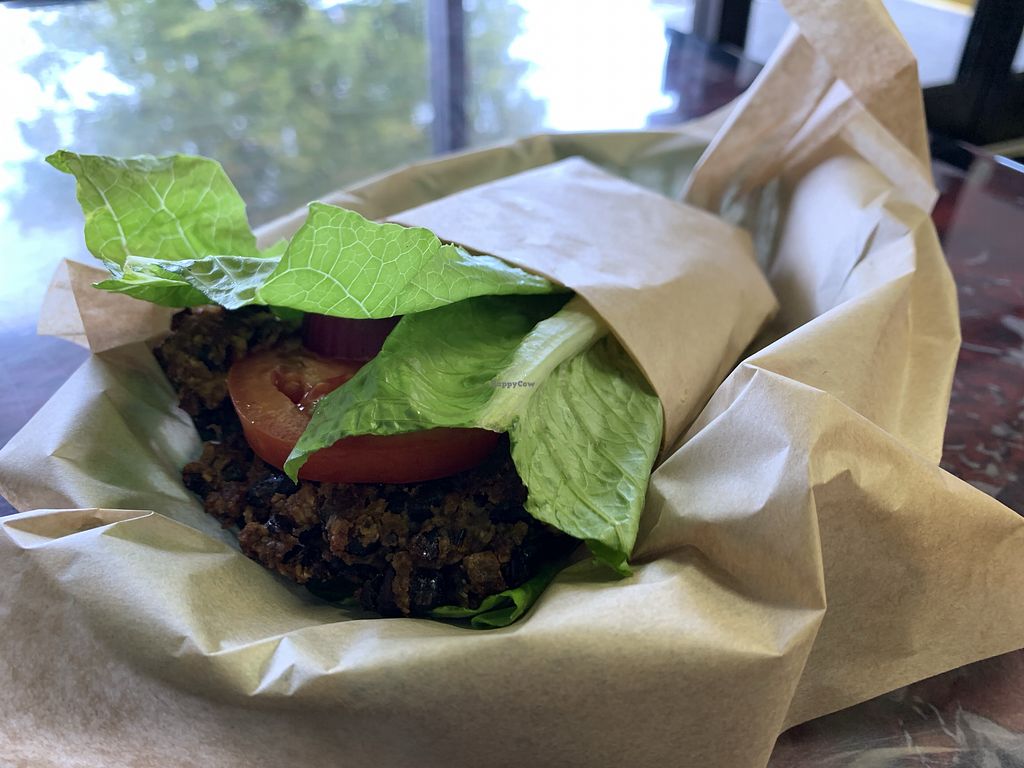 I had a bean patty wrapped in romaine and it was the best bean patty I’ve ever had. It was crispy and perfectly flavored. I’m not usually a fan of ‘patties’ but this one is amazing.