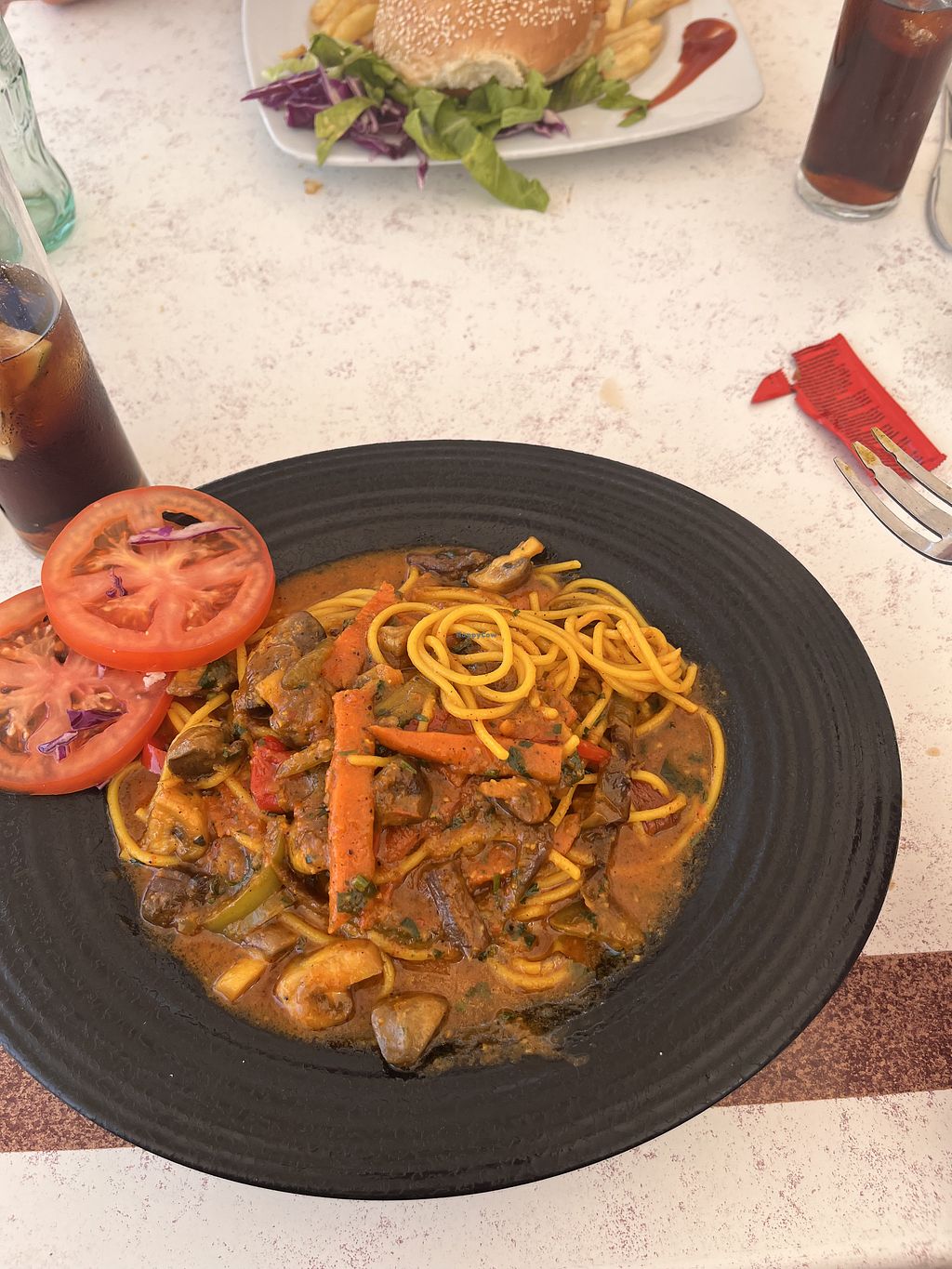 I had a veg pasta dish that was amazing. Daughter had veg burger that was ok… good location on the beach. Further down than the map shows.