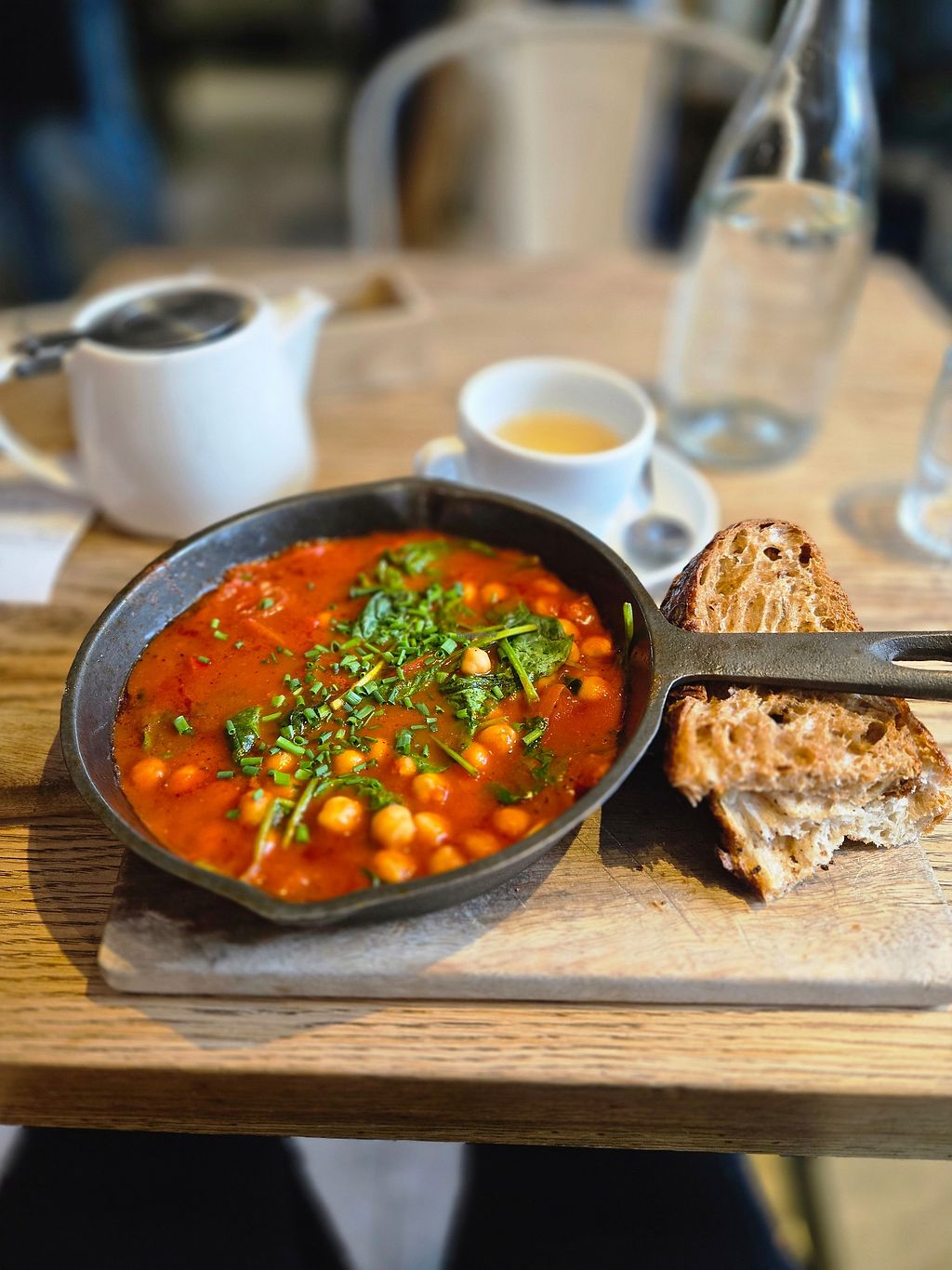 Decent number of vegan options on the lunch menu. The chickpea shakshouka was delicious (the sourdough it was served with was incredible) and I saw two vegan sandwich options: mushroom with mixed salad and cashew cream, and an avocado open sandwich. Non-dairy milk available for coffees.