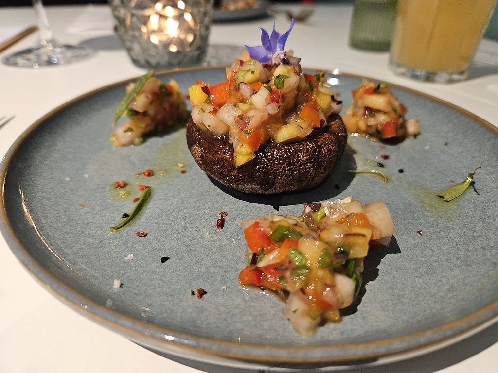 Stuffed mushrooms with peach salsa
