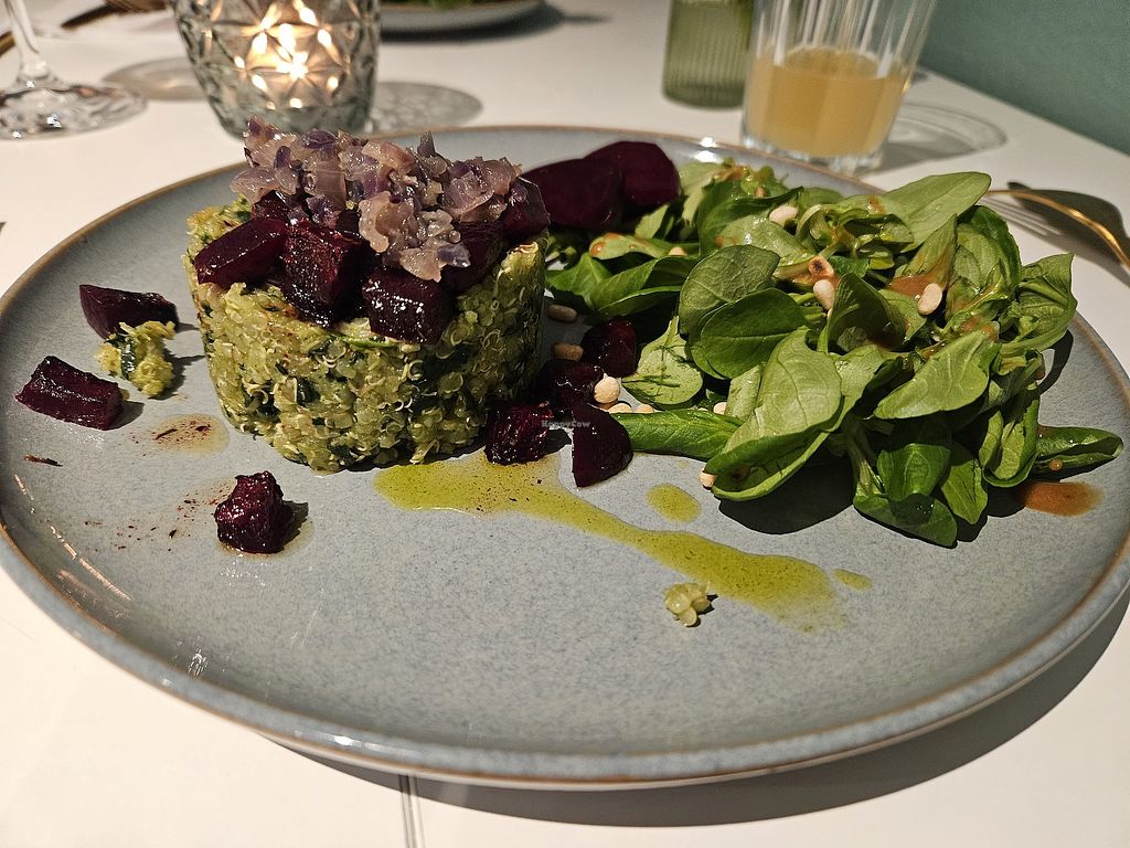 Green quinoa with beetroot on lamb's lettuce